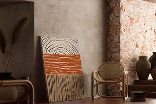 Gemälde Farbige – Sonnenschein aus Ton | Plakat Landschaft stilisiert Terrakotta und natürliche Töne | Boho-Deko für Wohnzimmer oder Schlafzimmer