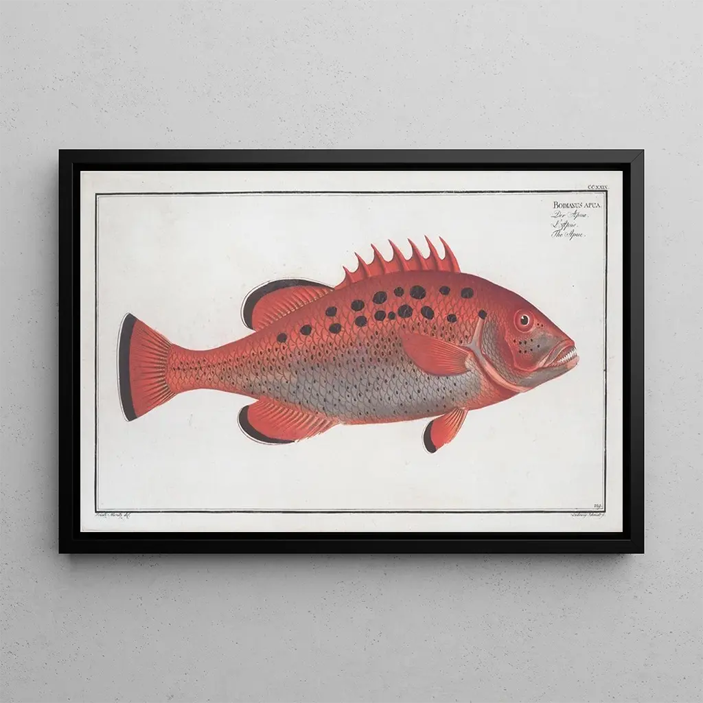 Die kunstdruck von Bodianus apua, allgemein bekannt als L'Apue, ist eine wahre hommage an die Vielfalt der Meeresgrundlagen. Dieses Gemälde, das mit einer zarten Aquarelltechnik gefertigt wurde, hebt lebendige Farben hervor, die vom tiefblauen Ozean bis zu den leuchtenden Nuancen der Korallen reichen. Der Künstler hat die Essenz dieses tropischen Fisches eingefangen, mit feinen Details, die die Texturen seiner Schuppen und die Flüssigkeit seiner Bewegungen offenbaren. Die Atmosphäre, die von diesem Werk ausgeht, ist sowohl beruhigend als auch faszinierend und lädt den Betrachter ein, in eine lebendige Unterwasserwelt einzutauchen.