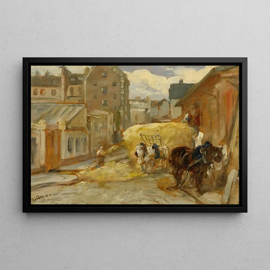 La Charrette de foin : eine idyllische Szene voller Gelassenheit La Charrette de foin, ein ikonisches Werk von Walter Shirlaw, zeigt eine ländliche Szene, in der Natur und Mensch in Harmonie koexistieren. Die warmen, erdigen Farben dominieren die Leinwand und vermitteln die Wärme eines Sommertages. Shirlaws Technik, die geschickt Realismus mit einem impressionistischen Touch verbindet, erweckt jedes Detail zum Leben, von den Gräsern bis zu den Gesichtern der Figuren. Die friedliche Atmosphäre, die von diesem Werk ausgeht, lädt zur Kontemplation ein und versetzt den Betrachter in eine Welt, in der die Zeit stillzustehen scheint, fernab der Turbulenzen des modernen Lebens. Walter Shirlaw : ein Meister der amerikanischen Landschaftsmalerei Walter Shirlaw, ein schottischer Maler, hat die Essenz der amerikanischen Landschaften im 19. Jahrhundert eingefangen. Beeinflusst von den großen europäischen Meistern, entwickelte er einen einzigartigen Stil, der Realismus und Impressionismus vereint. Shirlaw war ein aktives Mitglied der Kunstszene seiner Zeit, nahm an zahlreichen Ausstellungen teil und trug zur Anerkennung der amerikanischen Landschaftsmalerei bei. Sein Werk, La Charrette de foin, veranschaulicht perfekt sein Talent, die Schönheit der Natur und das Landleben darzustellen, und zeugt zugleich von der künstlerischen Entwicklung, die seine Epoche prägte. Eine dekorative Anschaffung mit vielfältigen Vorzügen Die Wahl einer Reproduktion von La Charrette de foin bedeutet, eine Leinwand zu wählen, die Ihrem Zuhause einen Hauch von Charme und Gelassenheit verleiht. Ob im Wohnzimmer, im Büro oder im Schlafzimmer, dieses Werk fügt sich harmonisch in verschiedene Einrichtungsstile ein. Die Qualität der Reproduktion garantiert eine Treue zu den Farben und Details des Originals und bietet gleichzeitig eine unbestreitbare ästhetische Anziehungskraft. Mit diesem Bild in Ihrer Sammlung schaffen Sie einen einladenden und inspirierenden Raum, in dem jeder Blick auf diese idyllische Szene Ruhe und die Schönheit der Natur evoziert.