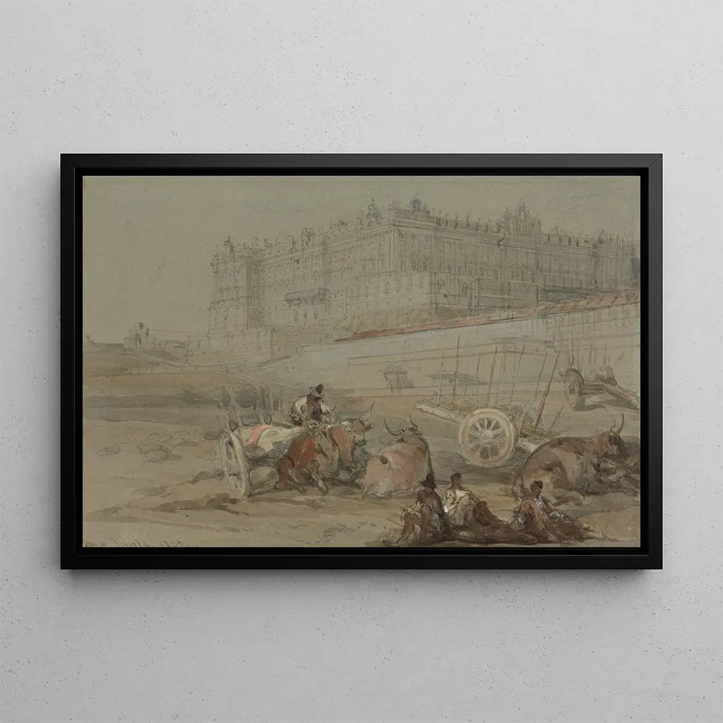 Der Königliche Palast Madrid 1832: ein Blick auf die architektonische Eleganz. Dieses Werk von David Roberts, das 1832 entstand, entführt uns ins Herz der majestätischen Architektur des Königlichen Palasts von Madrid. Die detaillierten Feinheiten und die lebendigen Farben fangen die Größe dieses ikonischen Denkmals ein. Das Licht spielt eine entscheidende Rolle, hebt die Ornamente und Fassaden hervor, während der Himmel, tiefblau, im Kontrast zu den warmen Tönen der Steine steht. Die Komposition lädt zu einer visuellen Erkundung ein, jedes Element ist sorgfältig angeordnet, um eine perfekte Harmonie zu schaffen. Dieser kunstdruck des Königlichen Palasts ist eine wahre Ode an Schönheit und Geschichte und bietet eine Eintauchen in die Kunst der Epoche. David Roberts: ein Pionier des architektonischen Romantizismus. David Roberts, in Schottland 1796 geboren, gilt als einer der bedeutendsten Maler von Landschaften und Architektur des 19. Jahrhunderts. Sein Werk ist geprägt von einem romantischen Stil, bei dem er Präzision und Emotion verbindet. Beeinflusst durch seine Reisen in Europa und den Nahen Osten, konnte Roberts die Essenz der Orte mit einer einzigartigen Sensibilität einfangen. Seine Schaffensperiode, hauptsächlich in den 1820er und 1830er Jahren, fällt zusammen mit einem wachsenden Interesse am Orientalismus und Reisen. Dieser kunstdruck des Königlichen Palasts Madrid zeugt von seiner Fähigkeit, historische Stätten zu verewigen, und macht ihn zu einer unverzichtbaren Figur der britischen Kunst. Eine dekorative Anschaffung mit vielfältigen Vorzügen. Dieser kunstdruck des Königlichen Palasts Madrid ist eine ideale Wahl, um Ihr Interieur zu bereichern, sei es im Wohnzimmer, Büro oder Schlafzimmer. Seine Druckqualität und die Treue zu den Originalfarben garantieren eine beeindruckende ästhetische Darstellung. Durch die Integration dieses Bildes in Ihre Dekoration verleihen Sie Ihrem Raum eine Note von Eleganz und Kultur. Das Werk zieht den Blick auf sich und regt Gespräche an, während es eine beruhigende Atmosphäre durch seine harmonischen Nuancen schafft. Ein wahrer dekorativer Vorteil, der Kunst- und Geschichtsliebhaber begeistern wird.