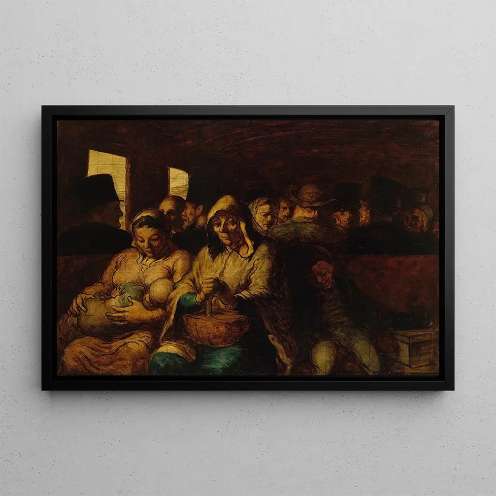 Le Wagon de Troisième Classe : ein eindrucksvoller Blick auf die menschliche Bedingung Das Gemälde Le Wagon de Troisième Classe von Honoré Daumier zeigt mit bemerkenswerter Intensität das Leben der unteren Klassen im 19. Jahrhundert. In diesem Werk sind die Figuren in einem überfüllten Zugwagen dargestellt, was eine Reiseszene illustriert, in der Enge und Erschöpfung spürbar sind. Die dunklen, erdigen Farben sowie die ausdrucksstarken Gesichtszüge schaffen eine Atmosphäre, die sowohl realistisch als auch emotional ist. Daumier, durch seine Fähigkeit, die Details des Alltags einzufangen, taucht uns in eine soziale Realität ein, die oft ignoriert wird, und würdigt so die Würde der einfachen Menschen. Honoré Daumier : ein Meister der Karikatur und der sozialen Malerei Honoré Daumier, geboren 1808, ist ein bedeutender französischer Künstler der realistischen Bewegung. Seine Karriere erstreckt sich über mehrere Jahrzehnte, in denen er es verstand, Malerei, Skulptur und Karikatur zu verbinden, um soziale und politische Ungerechtigkeiten seiner Zeit anzuprangern. Beeinflusst von den Ereignissen der Revolution von 1848 und den Kämpfen der Arbeiterklasse, nutzt Daumier seine Kunst als Mittel sozialer Kritik. Der kunstdruck Le Wagon de Troisième Classe ist eines seiner bekanntesten Werke und illustriert eindrucksvoll die Lebensbedingungen der Ärmsten sowie das Engagement des Künstlers für die soziale Sache. Eine dekorative Anschaffung mit vielfältigen Vorzügen Der kunstdruck des Wagon de Troisième Classe ist eine dekorative Wahl, die eine historische und soziale Dimension in Ihr Zuhause bringt. Ob im Wohnzimmer, im Büro oder in einem Ausstellungsraum, dieses Bild zieht die Aufmerksamkeit auf sich und regt Gespräche an. Die Druckqualität garantiert eine Treue zu den Nuancen und Details des Originalwerks, während sie gleichzeitig eine authentische Note in Ihre Dekoration bringt. Durch die Integration dieses Gemäldes in Ihren Raum bieten Sie nicht nur ein Kunstwerk, sondern auch ein eindrucksvolles Zeugnis der Menschlichkeit und ihrer Kämpfe.