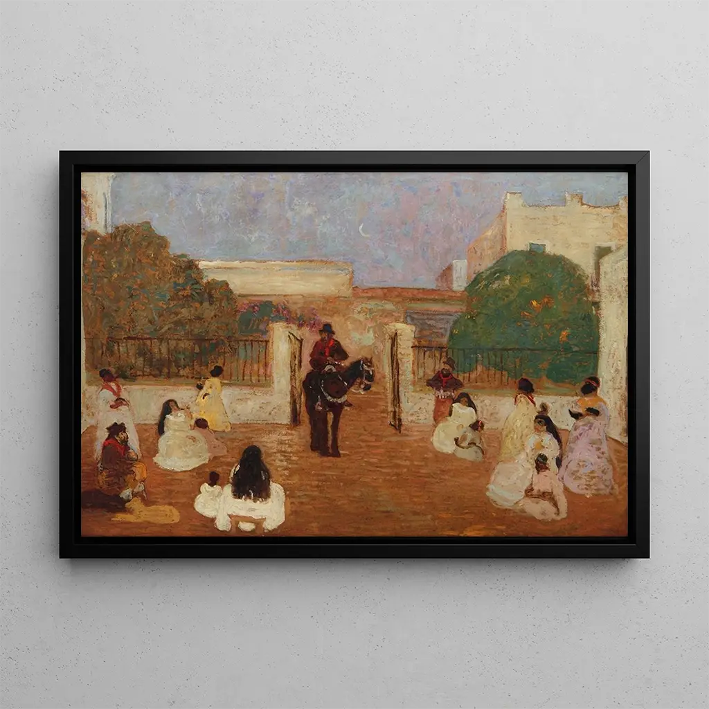 Pedro Figari, geboren 1861, ist ein argentinischer Künstler, dessen Werk eine Schlüsselrolle bei der Entwicklung der modernen Kunst in Argentinien spielte. Beeinflusst von volkstümlichen Traditionen und den Landschaften seines Landes, konnte Figari Elemente der populären Kultur in seine Kreationen integrieren. Sein einzigartiger Stil, der europäische und lokale Einflüsse verbindet, hat dazu beigetragen, eine eigene künstlerische Identität Argentiniens zu formen. "El Gaucho Candioti" ist eine perfekte Illustration seines Engagements, das tägliche Leben und die Traditionen seines Landes darzustellen, während er seinen Kompositionen eine moderne Note verleiht.