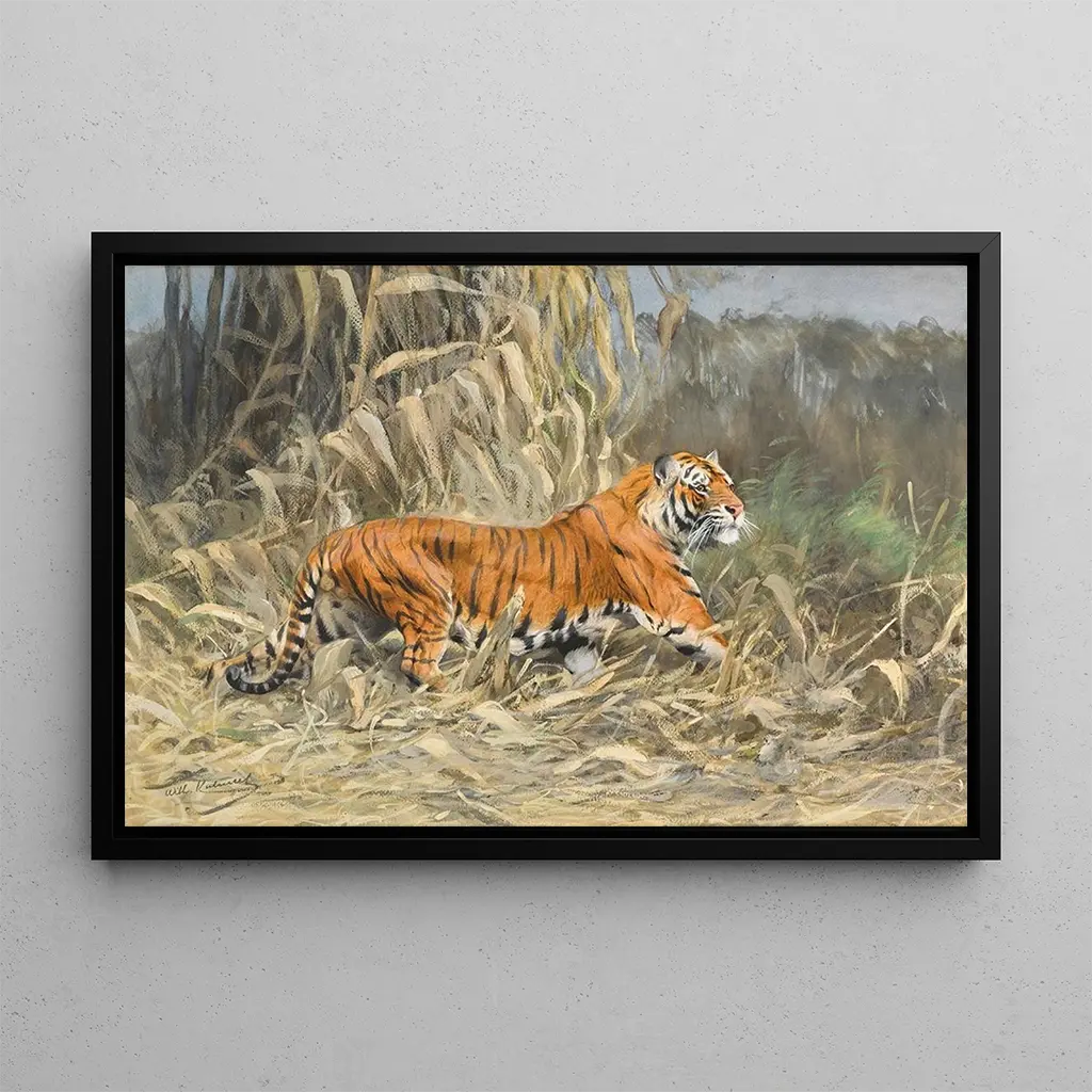 Dans la jungle : eine Reise ins Herz der wilden Natur Der kunstdruck « Dans la jungle » von Wilhelm Kuhnert taucht uns ein in eine lebendige Welt voller Farben und Leben. Dieses Leinwandbild, reich an Details, zeigt eine lebhafte Szene, in der Tierwelt und Pflanzenwelt in faszinierender Harmonie verschmelzen. Die grünen Töne des Laubs kontrastieren mit den Lichtstrahlen, die durch die Zweige filtern, und schaffen eine Atmosphäre, die sowohl ruhig als auch dynamisch ist. Die Technik des Künstlers, die Realismus und Impressionismus verbindet, ermöglicht es, die Wärme und Feuchtigkeit dieser üppigen Dschungellandschaft zu spüren und den Betrachter einzuladen, jeden Winkel dieser lebendigen Szene zu erkunden. Wilhelm Kuhnert: ein Meister der wilden Tierwelt Wilhelm Kuhnert, deutscher Maler und Illustrator des frühen 20. Jahrhunderts, ist bekannt für seine fesselnden Werke, die Natur und Tiere darstellen. Beeinflusst von seinen Reisen in Afrika, konnte er das Wesen der wilden Tierwelt mit bemerkenswerter Präzision einfangen. Sein Stil, der Realismus und Empfindsamkeit vereint, prägte seine Zeit und trug zur Entstehung eines neuen Blicks auf die Tierwelt bei. Kuhnert war auch ein leidenschaftlicher Verfechter des Naturschutzes, und seine Werke inspirieren weiterhin zu tiefem Respekt für die Umwelt und ihre Bewohner. Eine dekorative Anschaffung mit vielfältigen Vorzügen Der kunstdruck « Dans la jungle » ist ein ideales Dekorationsstück, um Ihr Zuhause zu bereichern. Ob im Wohnzimmer, im Büro oder im Schlafzimmer, dieses Bild bringt einen Hauch Exotik und Frische in Ihren Raum. Die Qualität des Kunstdrucks garantiert eine detailgetreue Wiedergabe der Originalfarben und -details, verbunden mit einer unverkennbaren ästhetischen Anziehungskraft. Mit diesem Leinwandbild wählen Sie ein dekoratives Element, das Staunen hervorruft und zur Kontemplation einlädt, und verwandelt so Ihre Umgebung in ein wahres Naturrefugium.