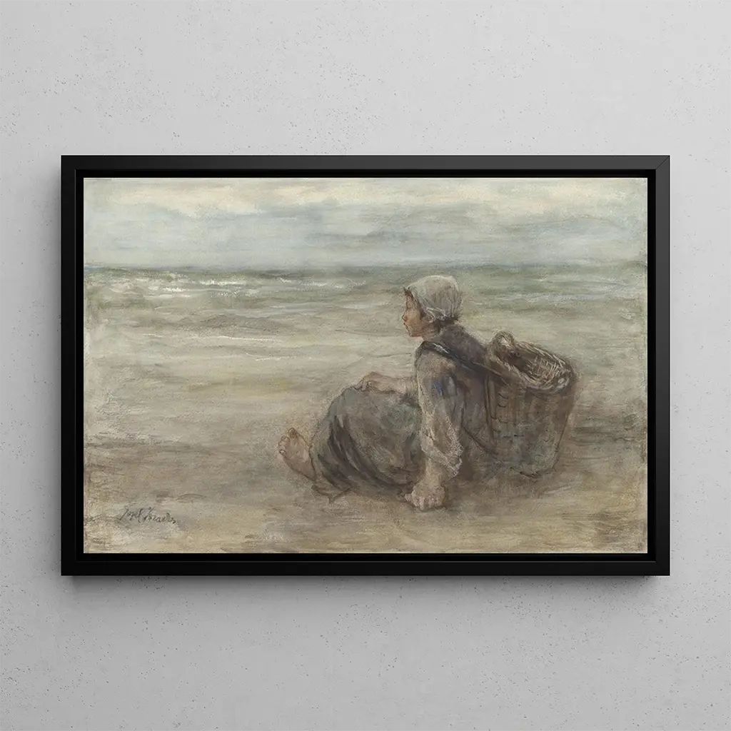 In dieser kunstdruckversion von Jeune fille de pêcheur sur la plage fängt Jozef Israëls einen Moment der Gelassenheit und Schlichtheit ein. Das Leinwandbild zeigt ein junges Mädchen, gekleidet in traditionelle Kleidung, sitzend im Sand und den Meereshorizont betrachtend. Die sanften, pastelligen Farben, die Nuancen von Blau und Beige vermischen, schaffen eine beruhigende Atmosphäre. Die Technik des Künstlers, die zarten Pinselstriche verwendet, erweckt die Textur des Meeres und die Sanftheit des Sonnenuntergangs zum Leben. Dieses Werk ruft eine spürbare Nostalgie hervor und lädt den Betrachter ein, sich an diesem friedlichen Strand vorzustellen.