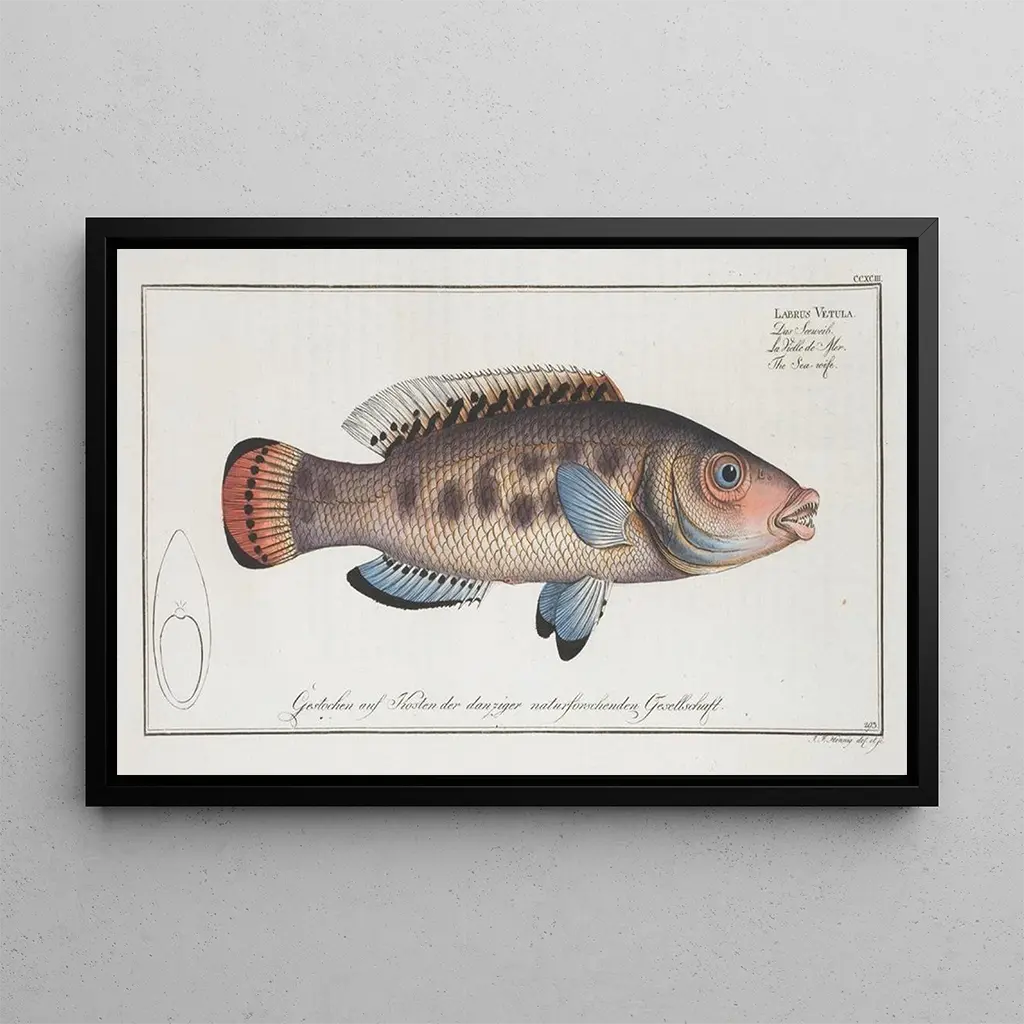 Labrus Vetula, die Seewife : ein Einblick in die Meeresbiodiversität Die Leinwand "Labrus Vetula, die Seewife" von Marcus Elieser Bloch bietet eine faszinierende Darstellung des Meereslebens und hebt die Schönheit und Vielfalt der Wasserarten hervor. Die lebendigen und detaillierten Farben dieses Fisches, mit ihren Nuancen von Grün und Blau, fangen das Auge ein und wecken die Tiefen des Meeres. Die präzise Technik Blochs, die Realismus und Ästhetik vereint, würdigt die Fülle der Unterwasserfauna. Dieses Bild ist eine wahre Einladung, die Geheimnisse des Ozeans zu erforschen und die Zartheit seiner Bewohner zu schätzen. Marcus Elieser Bloch : ein Pionier der zoologischen Illustration Marcus Elieser Bloch, aktiv im 18. Jahrhundert, ist bekannt für seine Beiträge zur zoologischen Illustration, insbesondere im Bereich der Ichthyologie. Sein bedeutendes Werk, "Naturgeschichte der ausländischen Fische", markierte einen Wendepunkt in der Darstellung von Fischen, bei dem Wissenschaft und Kunst verbunden werden. Beeinflusst von den Entdeckungen seiner Zeit, konnte Bloch die Merkmale der Meeresarten präzise erfassen und ihnen gleichzeitig eine künstlerische Dimension verleihen. Seine Arbeit hat nicht nur das wissenschaftliche Wissen bereichert, sondern auch zahlreiche Künstler und Naturforscher über die Jahrhunderte inspiriert. Eine dekorative kunstdruck mit vielfältigen Vorzügen Der kunstdruck von "Labrus Vetula, die Seewife" ist eine faszinierende Ergänzung für jede Innendekoration, sei es für ein Büro, einen Spielraum oder ein Badezimmer. Die Qualität des kunstdrucks garantiert eine Treue zur Originalarbeit und ermöglicht es, die Schönheit der Details dieses Fisches zu bewundern. Mit seinem ästhetischen Reiz verleiht dieses Bild Ihrem Raum eine maritime und lebendige Note und weckt die Neugier auf die Biodiversität. Durch die Integration dieses Bildes in Ihre Dekoration schaffen Sie eine inspirierende und lehrreiche Umgebung, die die Schönheit der Natur feiert.