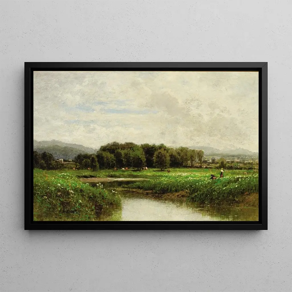 Die kunstdrucke von Paysage pastoral tauchen den Betrachter in ein lebendiges Gemälde voller Gelassenheit und natürlicher Schönheit. Die grünen Töne und die sanften Nuancen des Himmels schaffen eine friedliche Atmosphäre, in der die Zeit stillzustehen scheint. Die Komposition, ausgewogen und harmonisch, lädt zu einer Flucht in ferne Länder ein, in denen die Natur herrscht. Die detaillierten Darstellungen der Bäume und Hügel, verbunden mit dem zarten Licht, vermitteln ein Gefühl von Ruhe und Vollkommenheit. Dieses Gemälde, ein wahrhaftiges Hommage an die Natur, ist eine Einladung zur Kontemplation und Träumerei.