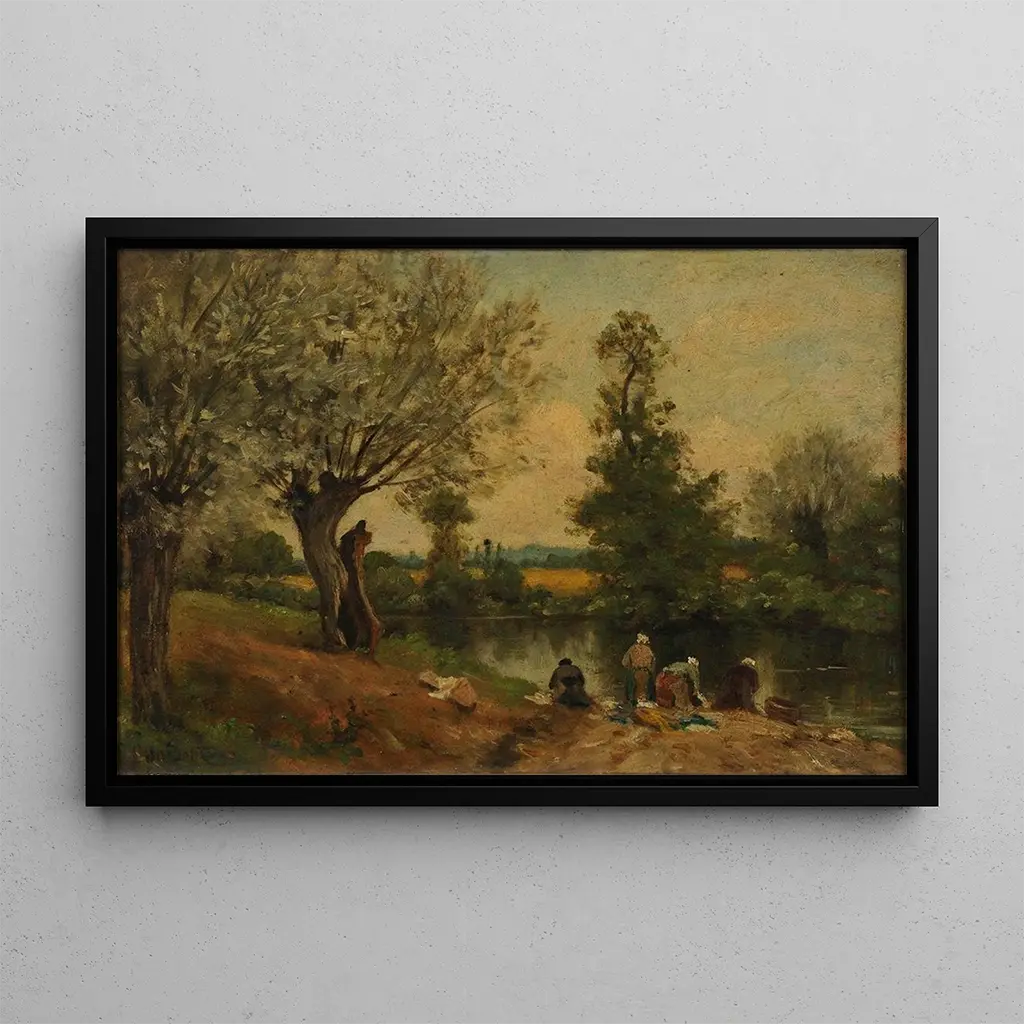 Paysage laveuses : ein Gemälde des Alltagslebens Das Gemälde *Paysage laveuses* von Eugène Lambert zeigt eine lebendige und dynamische Szene, in der Frauen eifrig Wäsche am Ufer eines Flusses waschen. Die Komposition ist reich an Details und fängt die Essenz der täglichen Arbeit mit bemerkenswerter Sensibilität ein. Die erdigen Farben und Blautöne erinnern an die umgebende Natur, während das Licht auf den Oberflächen spielt und Schatten sowie Reflexionen erzeugt, die dem Werk Tiefe verleihen. Lambert gelingt es, eine Atmosphäre von Ruhe und Fleiß zu vermitteln, die den Betrachter einlädt, die Schönheit der einfachen Gesten des Lebens zu schätzen. Eugène Lambert : ein Zeuge des ländlichen Lebens im 19. Jahrhundert Eugène Lambert, französischer Maler des 19. Jahrhunderts, ist bekannt für seine realistischen Darstellungen des ländlichen Lebens. In seinem künstlerischen Umfeld ausgebildet, wurde er vom realistischen Bewegung beeinflusst, die das Alltagsleben ohne Verklärung darstellen wollte. Lambert hat Szenen des bäuerlichen Lebens mit Präzision und Empathie eingefangen, was sein tiefes Respekt vor diesen Arbeitern zeigt. Seine Werke, oft von Nostalgie geprägt, bieten einen wertvollen Einblick in die Gesellschaft seiner Zeit und machen ihn zu einem bedeutenden Künstler in der französischen Kunstgeschichte. Eine dekorative Anschaffung mit vielfältigen Vorzügen Der kunstdruck des Gemäldes *Paysage laveuses* ist eine dekorative Wahl, die Ihrem Zuhause eine Note von Authentizität und Wärme verleiht. Ob im Wohnzimmer, Büro oder Schlafzimmer – diese Leinwand bereichert Ihren Lebensraum mit ihrem zeitlosen Charme. Die Druckqualität garantiert eine Farbtreue und Detailgenauigkeit des Originalwerks, sodass Sie seine ästhetische Anziehungskraft voll genießen können. Durch die Integration dieses Kunstwerks in Ihre Dekoration schaffen Sie eine Umgebung, die die Schönheit einfacher Momente und harter Arbeit feiert und gleichzeitig eine künstlerische Dimension in Ihren Alltag bringt.