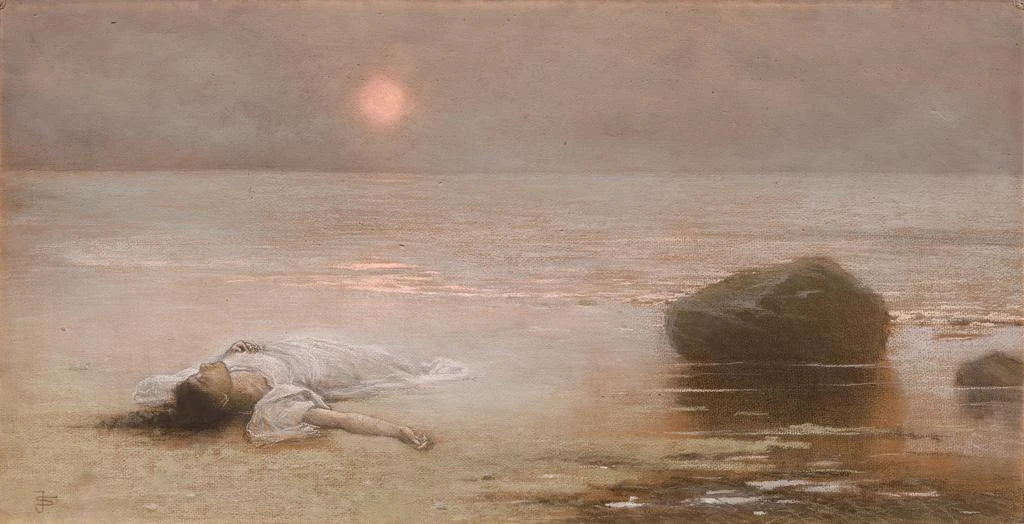In dem Werk "Noyé" fängt Jakub Schikaneder eine berührende Atmosphäre ein, in der Natur und Menschlichkeit in einem tragischen Moment aufeinandertreffen. Die Komposition, die auf den leblosen Körper im Wasser fokussiert, wird durch dunkle Farben und Blautöne verstärkt, die Traurigkeit und Kontemplation hervorrufen. Die Technik von Schikaneder, die Realismus und Impressionismus verbindet, schafft eine emotionale Tiefe, während das Licht auf den Wasserreflexionen spielt und der Szene eine fast traumhafte Dimension verleiht. Dieses Gemälde lädt den Betrachter ein, über die Zerbrechlichkeit des Lebens und die tragische Schönheit des Todes nachzudenken.