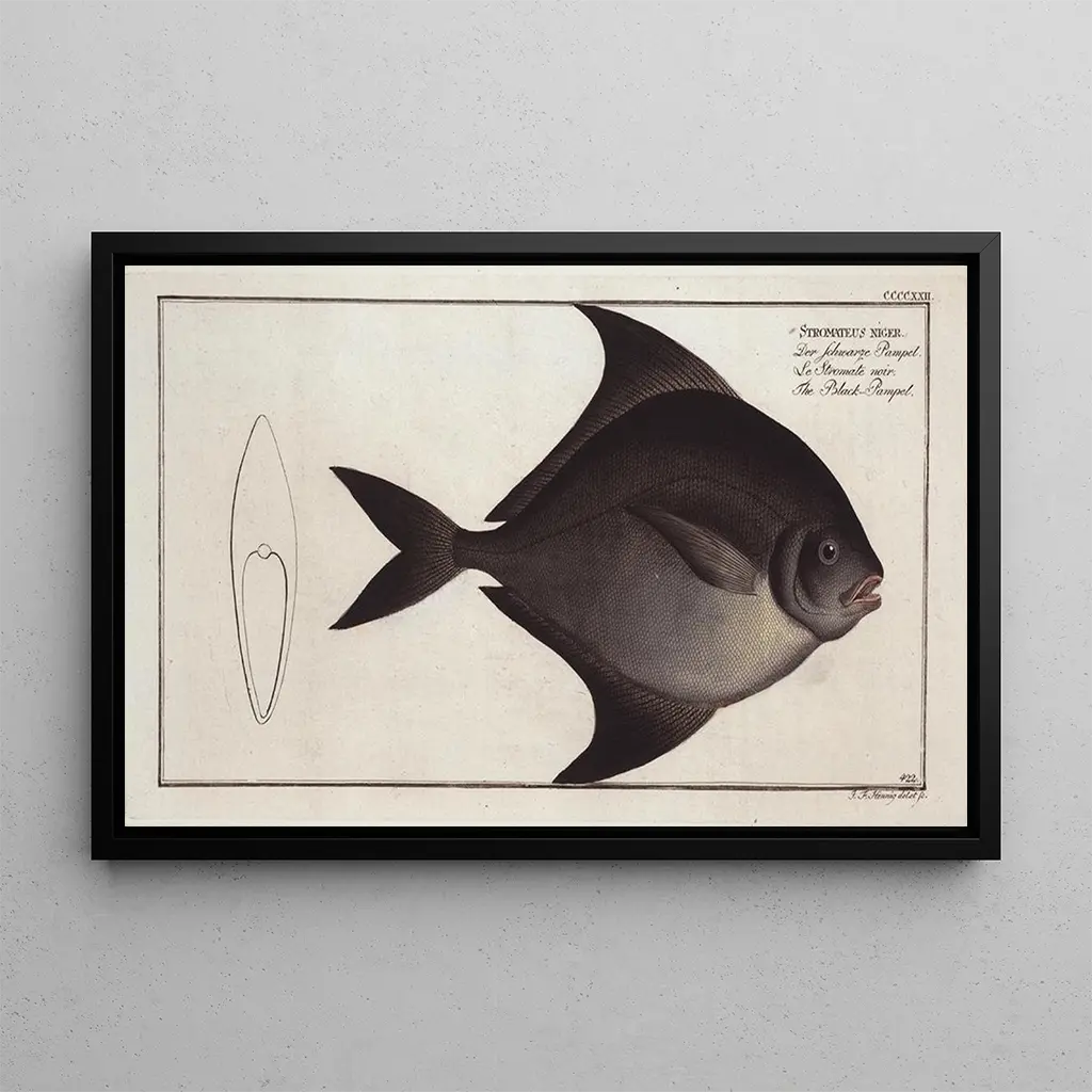 Stromateus niger Le Pampel noir : eine faszinierende Wasserwelt-Kunstdruck Die Kunstdrucke von "Stromateus niger", allgemein bekannt als Le Pampel noir, bieten einen beeindruckenden Einblick in das Meeresleben. Dieses Gemälde hebt die Nuancen von Blau und Grün hervor, die die Tiefen des Ozeans widerspiegeln, während es das Fischmotiv mit bemerkenswerter Präzision in Szene setzt. Die Technik von Marcus Elieser Bloch, die Realismus und detaillierte Feinheiten vereint, lässt die Flüssigkeit des Wassers und die Leichtigkeit des Pampel noir spüren. Dieses Werk entführt uns in eine Unterwasserwelt und zeigt die Schönheit und Vielfalt der aquatischen Fauna. Marcus Elieser Bloch: Pionier der künstlerischen Ichthyologie Marcus Elieser Bloch, aktiv im 18. Jahrhundert, ist ein deutscher Künstler und Naturforscher, bekannt für seine Fischillustrationen. Sein Werk ist geprägt von einem wissenschaftlichen Ansatz, der darauf abzielt, die verschiedenen Meeresarten mit unvergleichlicher Genauigkeit zu katalogisieren und darzustellen. Bloch reiste durch Europa und darüber hinaus, inspiriert von seinen Beobachtungen, um Werke zu schaffen, die Kunst und Wissenschaft verbinden. "Stromateus niger" ist ein emblematisches Beispiel seiner Arbeit, das nicht nur die Schönheit des Fisches zeigt, sondern auch die Bedeutung der Forschung zur marinen Biodiversität unterstreicht. Eine dekorative Anschaffung mit vielfältigen Vorzügen Der Kunstdruck von "Stromateus niger" ist eine perfekte Wahl für alle, die ihrer Inneneinrichtung einen maritimen Akzent verleihen möchten. Ob im Büro, im Badezimmer oder im Wohnzimmer – dieses Gemälde ruft die Ruhe der Ozeane und die Reichtum des Wasserlebens hervor. Die Qualität des Kunstdrucks garantiert eine detailgetreue Wiedergabe der Farben und Feinheiten und ehrt das Originalwerk von Bloch. Mit seiner ästhetischen Anziehungskraft wird diese Leinwand die Aufmerksamkeit auf sich ziehen und die Atmosphäre jedes Raumes bereichern, während sie die Schönheit der Unterwasser-Natur feiert.