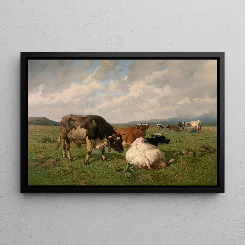Bétail dans le pré : eine idyllische Szene voller Gelassenheit In dieser kunstdruckversion von Bétail dans le pré entführt uns Louis Robbe in eine ländliche Landschaft, in der die Natur erblüht. Die sanften, hellen Farbtöne erinnern an das Tageslicht, während die friedlichen Tiere sich harmonisch in die umliegende Grünfläche einfügen. Robbes Technik, die Realismus und Impressionismus verbindet, schafft eine beruhigende, fast meditative Atmosphäre. Jedes Detail, von den Reflexionen im Wasser bis zu den Schatten der Bäume, trägt zu einer ausgewogenen Komposition bei, die zur Kontemplation und Flucht einlädt. Louis Robbe: ein Meister der ländlichen Landschaft Louis Robbe, französischer Maler des 19. Jahrhunderts, ist bekannt für seine Darstellungen der Natur und ländlicher Szenen. Beeinflusst vom Realismus, gehört er zu einer Epoche, in der die Kunst danach strebte, die Schönheit des Alltags einzufangen. Seine Werke, oft von Poesie geprägt, zeugen von einer besonderen Sensibilität gegenüber der natürlichen Welt. Robbe hat sich als bedeutender Künstler seiner Zeit etabliert und erkundet die Nuancen von Licht und Farben, um seinen Gemälden Leben einzuhauchen. Sein Erbe besteht weiter und inspiriert zahlreiche zeitgenössische Künstler, die Schönheit der Landschaften neu zu entdecken. Eine dekorative anschaffung mit vielfältigen vorteilen Der kunstdruck von Bétail dans le pré ist ein dekoratives Stück, das jeden Raum verschönern kann, sei es ein Wohnzimmer, ein Büro oder ein Schlafzimmer. Seine Druckqualität und seine Treue zum Originalwerk garantieren eine bemerkenswerte ästhetische Wirkung. Dieses Bild, mit seinen beruhigenden Farben und seiner ruhigen Atmosphäre, bringt einen Hauch von Natur und Ruhe in Ihr Zuhause. Mit der Wahl dieses Leinwandbildes entscheiden Sie sich für eine Dekoration, die die Einfachheit und Schönheit der Landschaften widerspiegelt und gleichzeitig eine künstlerische Note in Ihre Umgebung bringt.