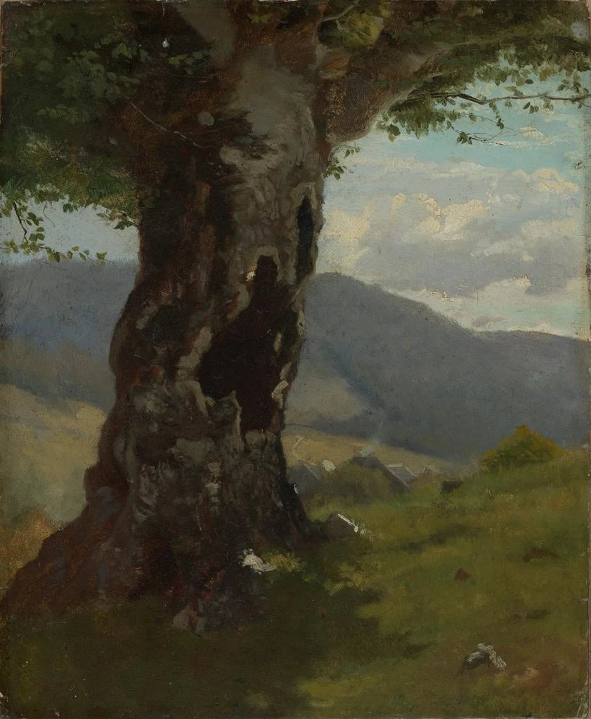 Alter Baumstamm mit Blick auf das Tal - Hans Thoma