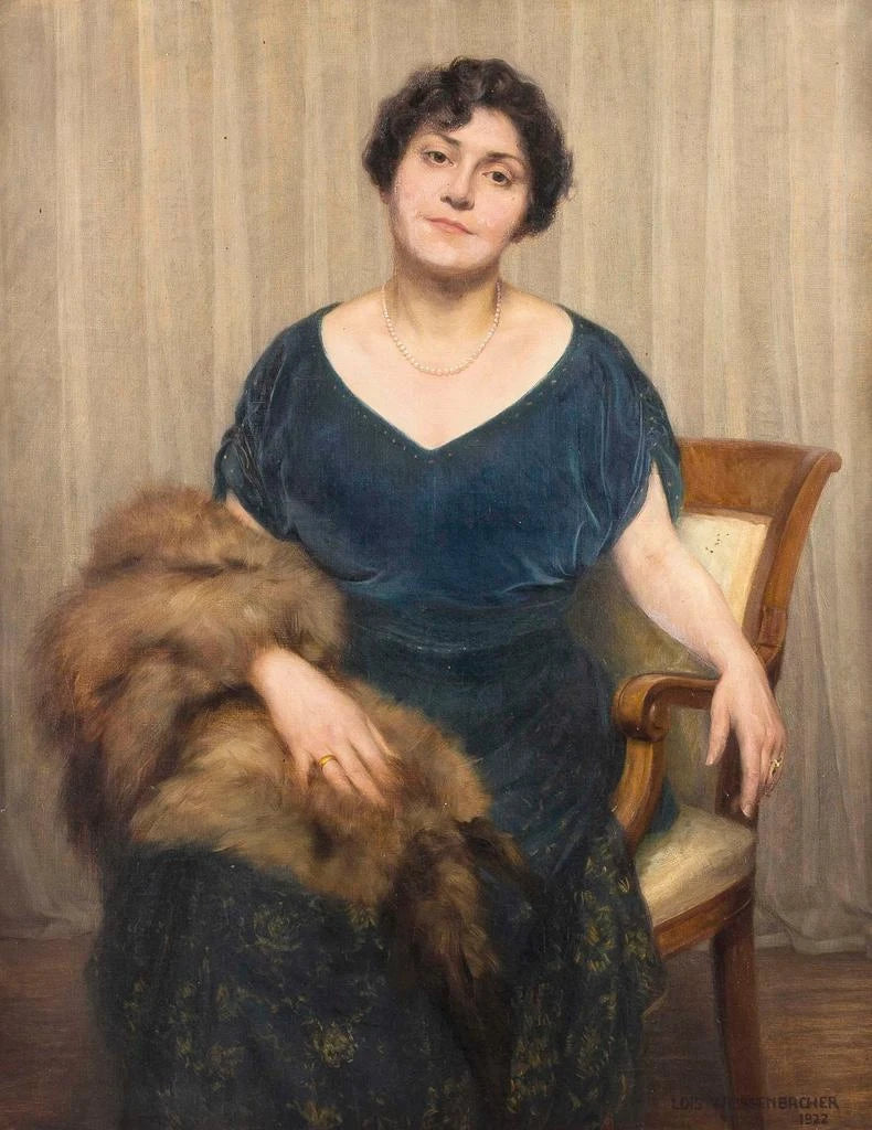 Dame im blauen Kleid und mit Fuchsfell - Louis Weissenbacher