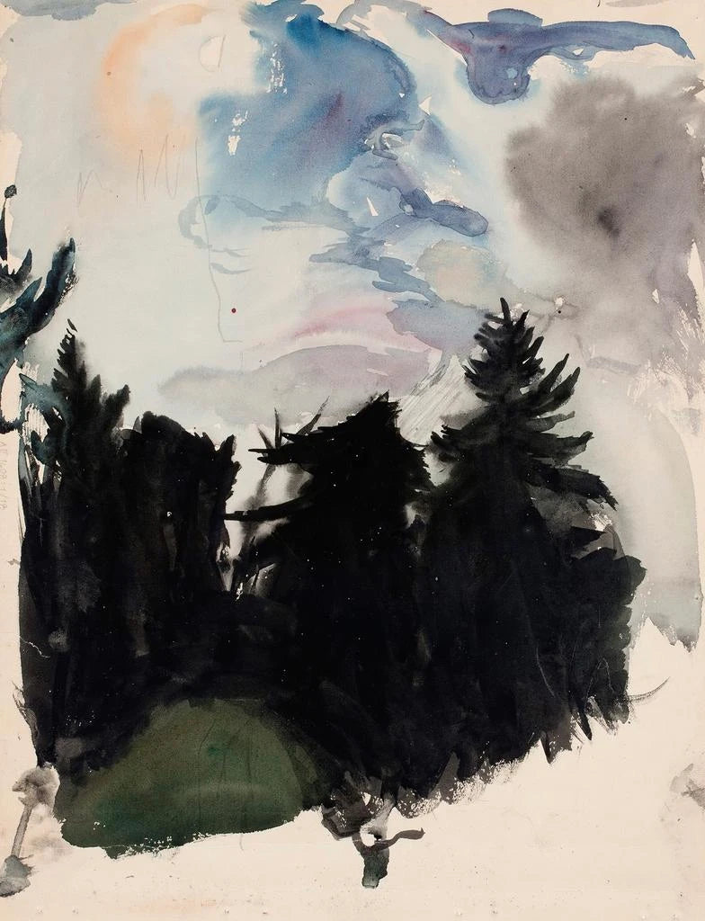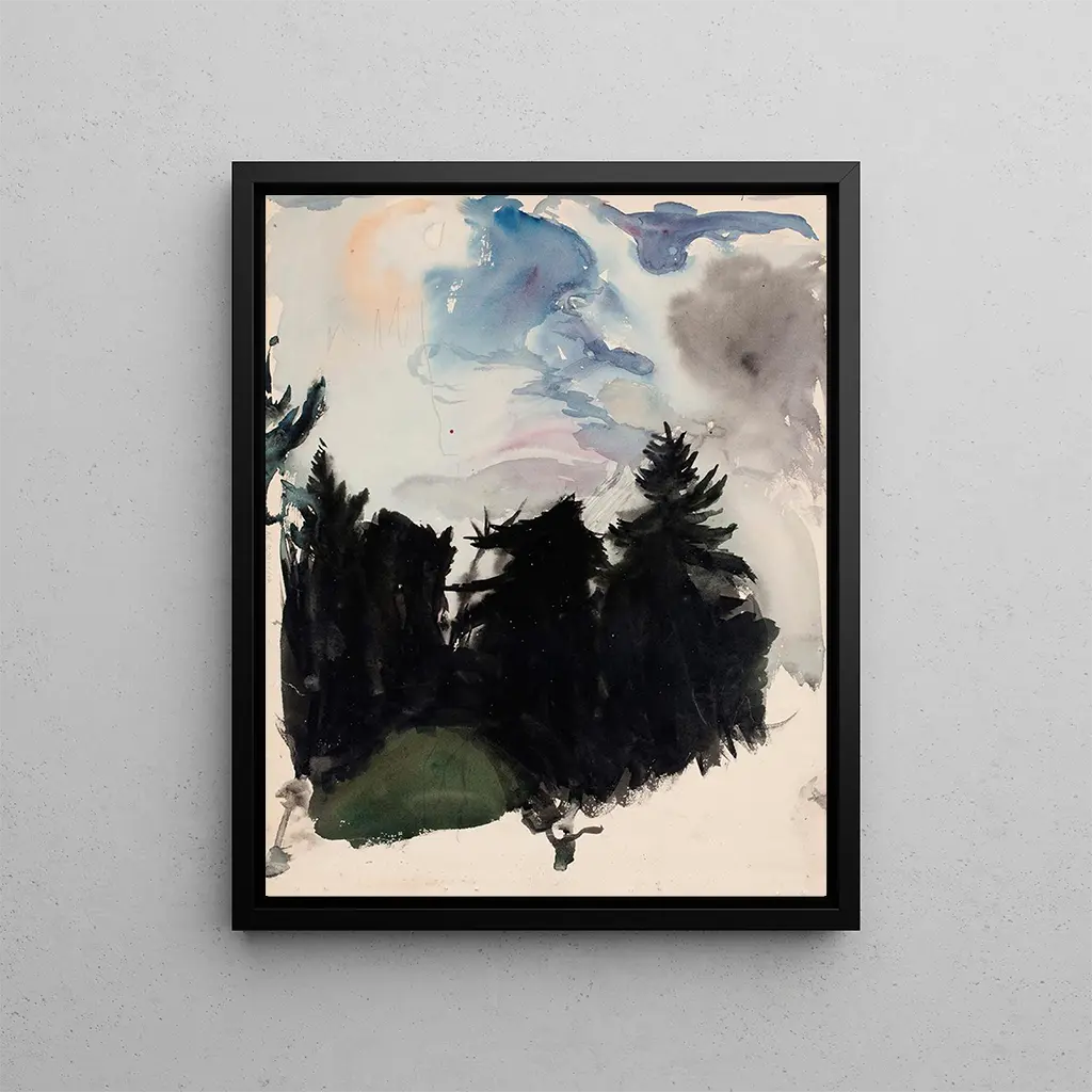 Ein Landschaftsbild mit schwarzen Fichten - Magnus Enckell