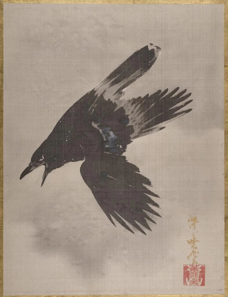 fliegender Rabe im Schnee - Kawanabe Kyōsai