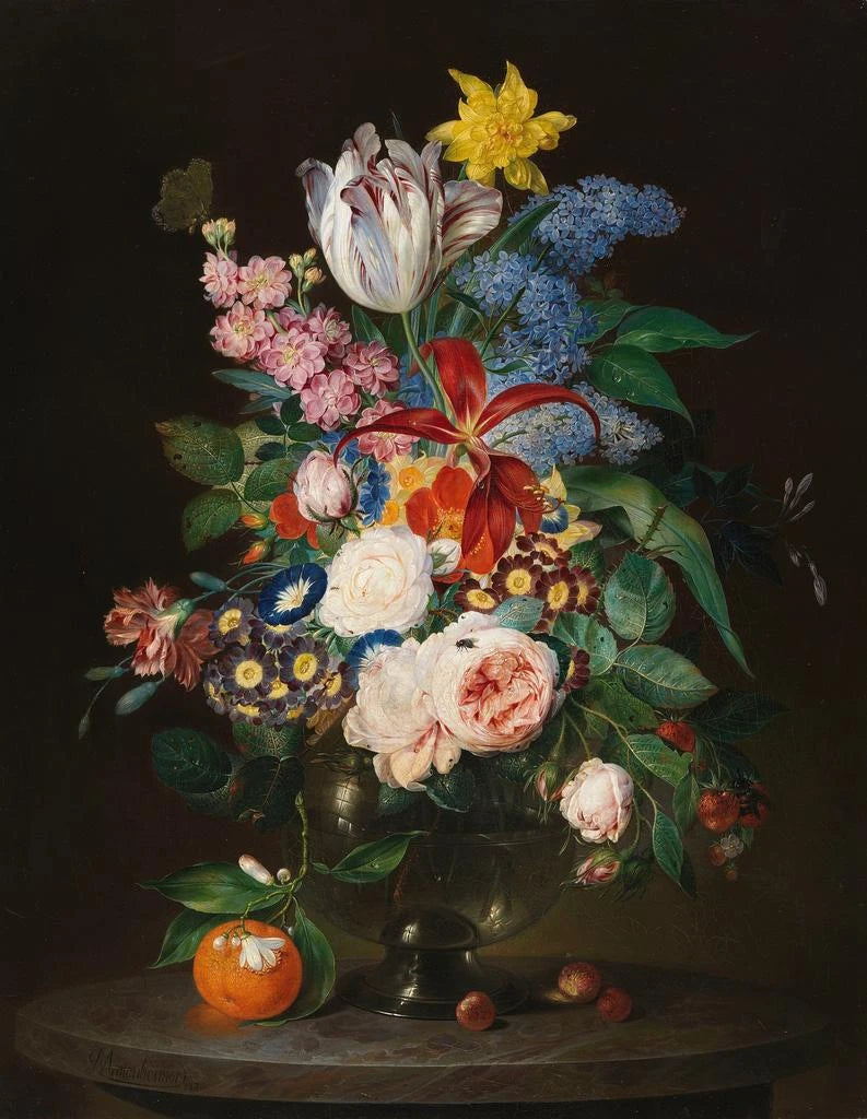Wunderschöne Blumenstillleben mit Insekten - Theodor Mattenheimer