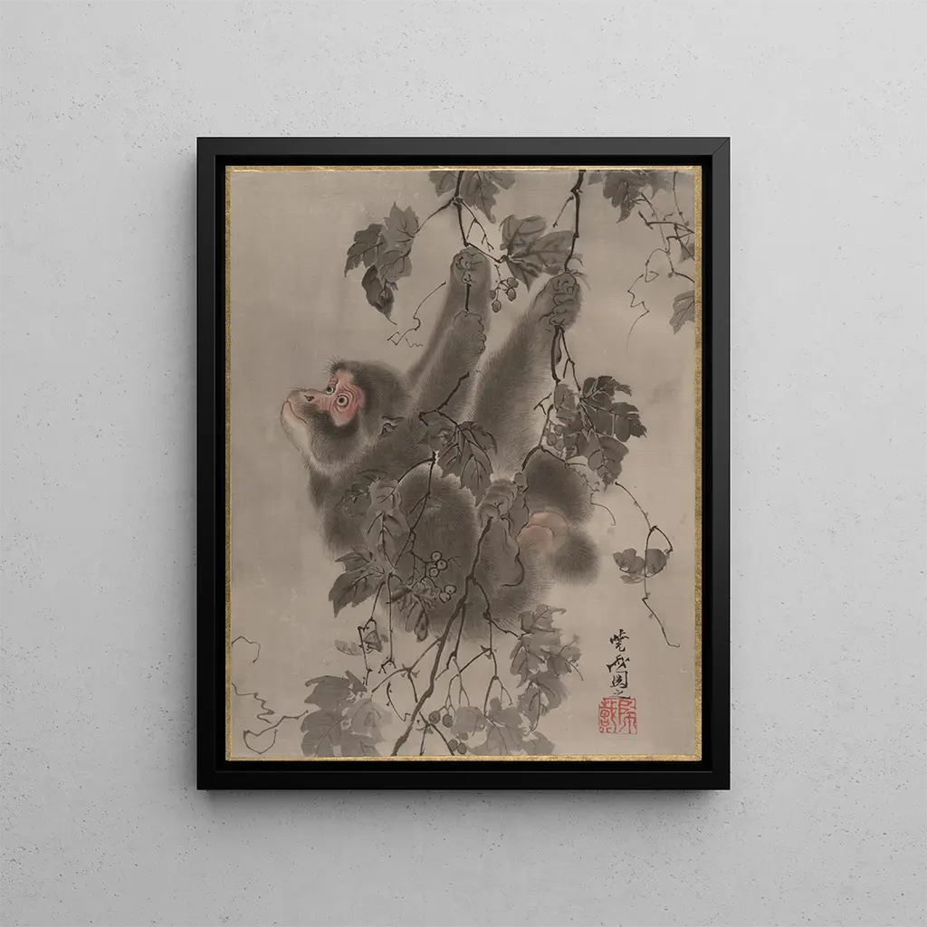 Hängender Affe an den Weinreben - Kawanabe Kyōsai Source: Singe suspendu aux vignes - Kawanabe Kyōsai