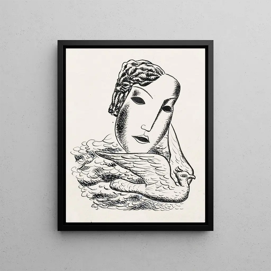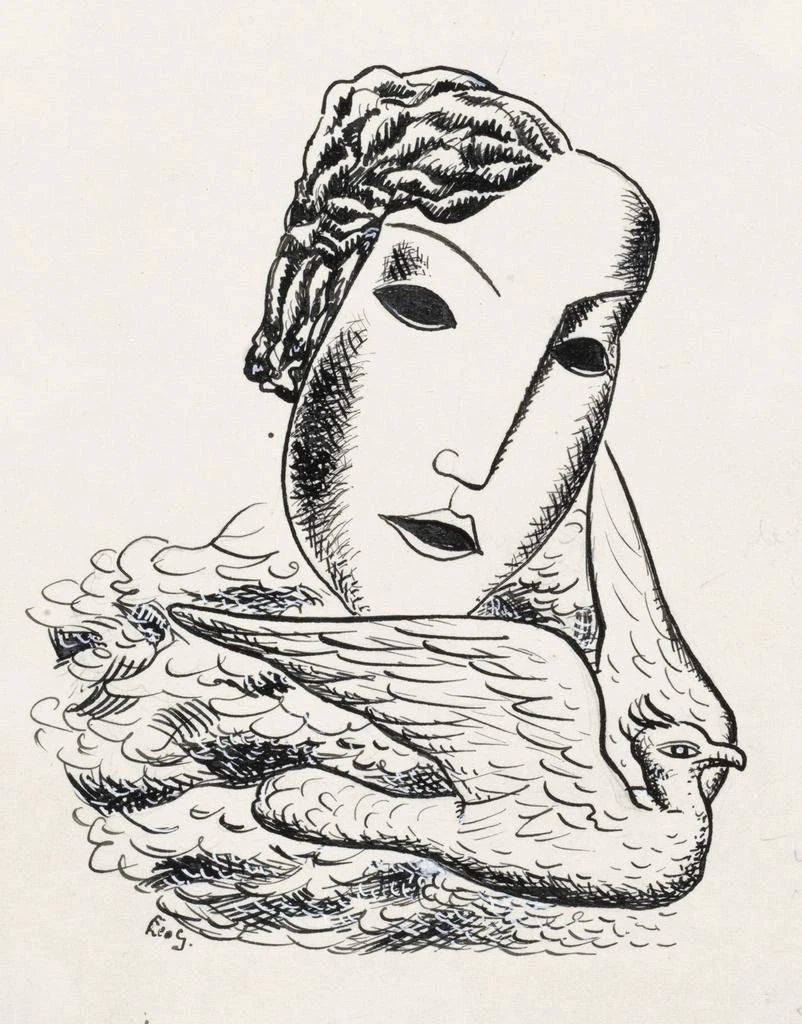 Croquis d'une tête de femme avec un oiseau - Leo Gestel