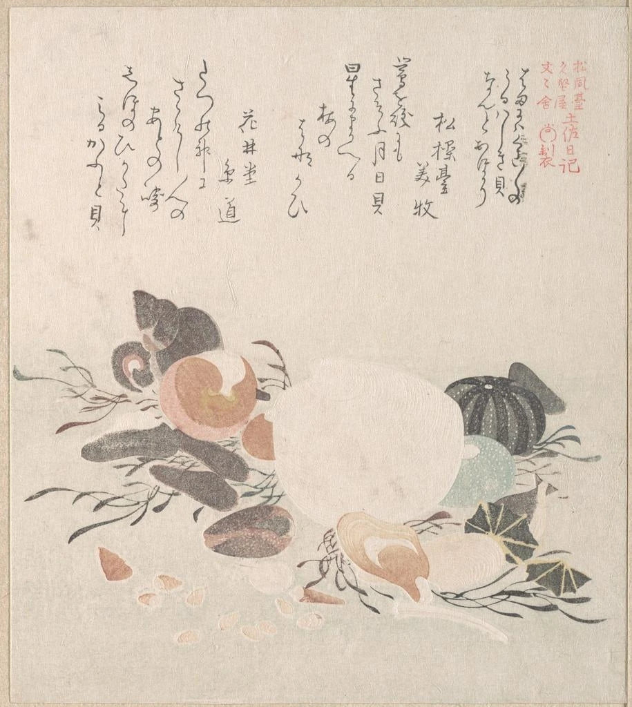 Verschiedene Muscheln mit Algen - Kubo Shunman