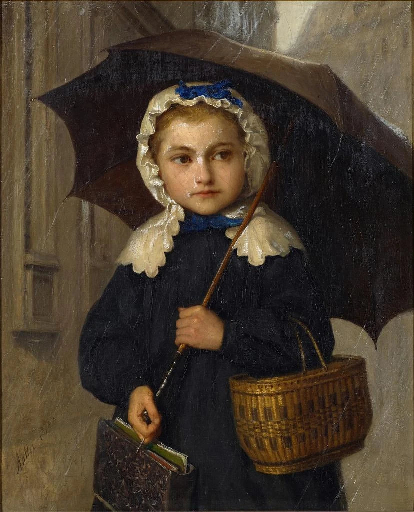 Kunstdruck | Louise Anker mit einem Regenschirm - Albert Anker