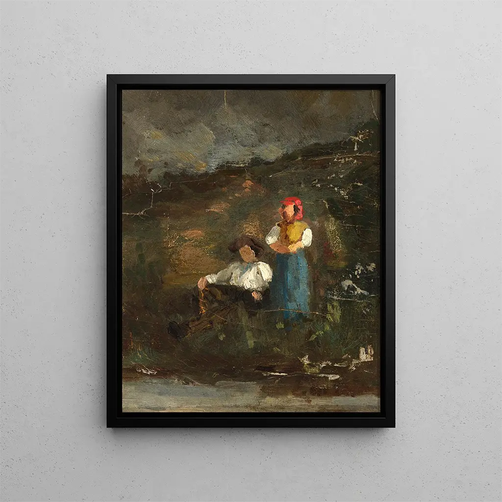 Edward Mitchell Bannister, geboren 1828 in Saint-Jean, New Brunswick, ist eine ikonische Figur der amerikanischen Kunst. Als afroamerikanischer Maler musste er die Herausforderungen seiner Zeit meistern, doch seine Entschlossenheit und sein Talent ermöglichten es ihm, sich in einem oft verschlossenen künstlerischen Umfeld durchzusetzen. Bannister war ein aktives Mitglied der Künstlerbewegung Neuenglands, und seine Arbeit wurde für seine Fähigkeit anerkannt, europäische Einflüsse mit amerikanischer Sensibilität zu verbinden. Sein Engagement für die Darstellung der Natur und Alltagsthemen ebnete den Weg für viele Künstler, die ihm folgten. "Repos" ist ein Zeugnis seines Erbes, ein Werk, das weiterhin inspiriert und zum Nachdenken anregt