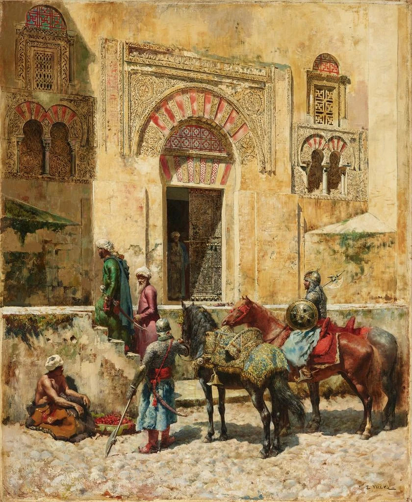 Edwin Lord Weeks, geboren 1849, ist einer der einflussreichsten amerikanischen Künstler des 19. Jahrhunderts im Bereich des Orientalismus. Als unermüdlicher Reisender durchquert er die Länder des Orients, nimmt die Kultur und die lokalen Traditionen auf, was sein Werk tief geprägt hat. Seine Faszination für islamische Architektur und das tägliche Leben der orientalischen Völker spiegelt sich in seinen Gemälden wider, in denen er die Seele der Orte einzufangen versteht. Weeks hat eine Brücke zwischen dem Westen und dem Orient gebaut und den Zuschauern eine romantisierte, aber respektvolle Sicht auf diese Zivilisationen geboten. Sein Einfluss erstreckt sich über seine eigene künstlerische Produktion hinaus,