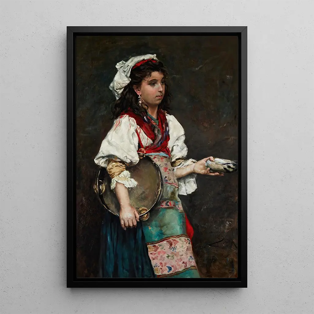 Die kunstdruck der Leinwand "Jeune fille gitane" von Julius LeBlanc Stewart entführt uns in eine bunte und fesselnde Welt. Die Komposition hebt eine junge Frau hervor, gekleidet in traditionelle Kleidung, deren leuchtende Farben die Wärme und Energie der gitane Kultur widerspiegeln. Die Nuancen von Rot, Blau und Gold verschmelzen harmonisch und schaffen eine Atmosphäre, die sowohl festlich als auch melancholisch ist. Stewart's Technik, die Realismus und Impressionismus verbindet, ermöglicht es, nicht nur die zarten Züge seines Modells einzufangen, sondern auch die Emotionen, die aus ihrem Blick hervorgehen. Dieses Bild lädt zu einer tiefen Betrachtung ein und offenbart die flüchtige Schönheit der Jugend.