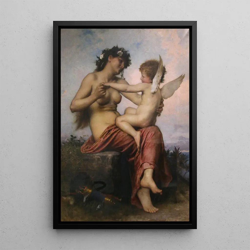 In "Cupidon capturé" taucht Léon Jean-Basile Perrault in eine mythologische Welt ein, in der Liebe und Schönheit sich miteinander verweben. Dieses Gemälde stellt den berühmten Liebesgott Cupido in einer zugleich schelmischen und verletzlichen Haltung dar. Die warmen Farben und die feinen Details der Komposition vermitteln eine Atmosphäre von Leichtigkeit und Traum. Die Technik von Perrault, die Feinheit des Strichs mit der Farbvielfalt verbindet, erweckt diese Szene zum Leben und macht sie fast greifbar. Dieses Bild lädt zu einer Reflexion über die Themen Liebe und Leidenschaft ein und feiert gleichzeitig die Schönheit der Mythologie.