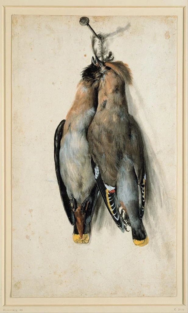 In diesem fesselnden Werk taucht uns Lucas Cranach der Ältere in eine Szene ein, in der zwei tote Eichelhäher, eingefroren in einem tragischen Moment, die vergängliche Schönheit des Lebens widerspiegeln. Die lebendigen Farben, die Nuancen von Blau und Grün vermischen, schaffen einen eindrucksvollen Kontrast zur Darstellung der Vögel, deren zarte Federn mit bemerkenswerter Präzision wiedergegeben sind. Cranachs Technik, gekennzeichnet durch klare Konturen und subtile Beleuchtung, verleiht diesem Gemälde eine Atmosphäre, die zugleich melancholisch und kontemplativ ist und den Betrachter dazu einlädt, über den Kreislauf von Leben und Tod nachzudenken.
