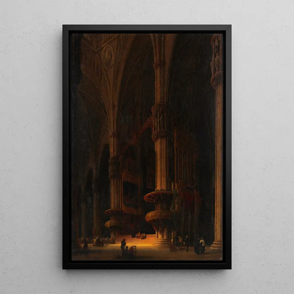 Die Reproduktion des Inneren der Mailänder Kathedrale ist ein dekoratives Stück, das jeden Raum aufwerten kann, sei es ein Wohnzimmer, ein Büro oder ein Schlafzimmer. Ihre Druckqualität und die Treue zu den Originaldetails machen sie zur idealen Wahl für Kunst- und Architekturliebhaber. Durch die Integration dieses Gemäldes in Ihre Dekoration verleihen Sie Ihrem Interieur einen Hauch von Eleganz und Kultur. Die ästhetische Anziehungskraft dieses Leinwandbildes wird zweifellos die Neugier Ihrer Gäste wecken und Ihnen gleichzeitig eine tägliche Erinnerung an die zeitlose Schönheit der gotischen Kunst bieten.
