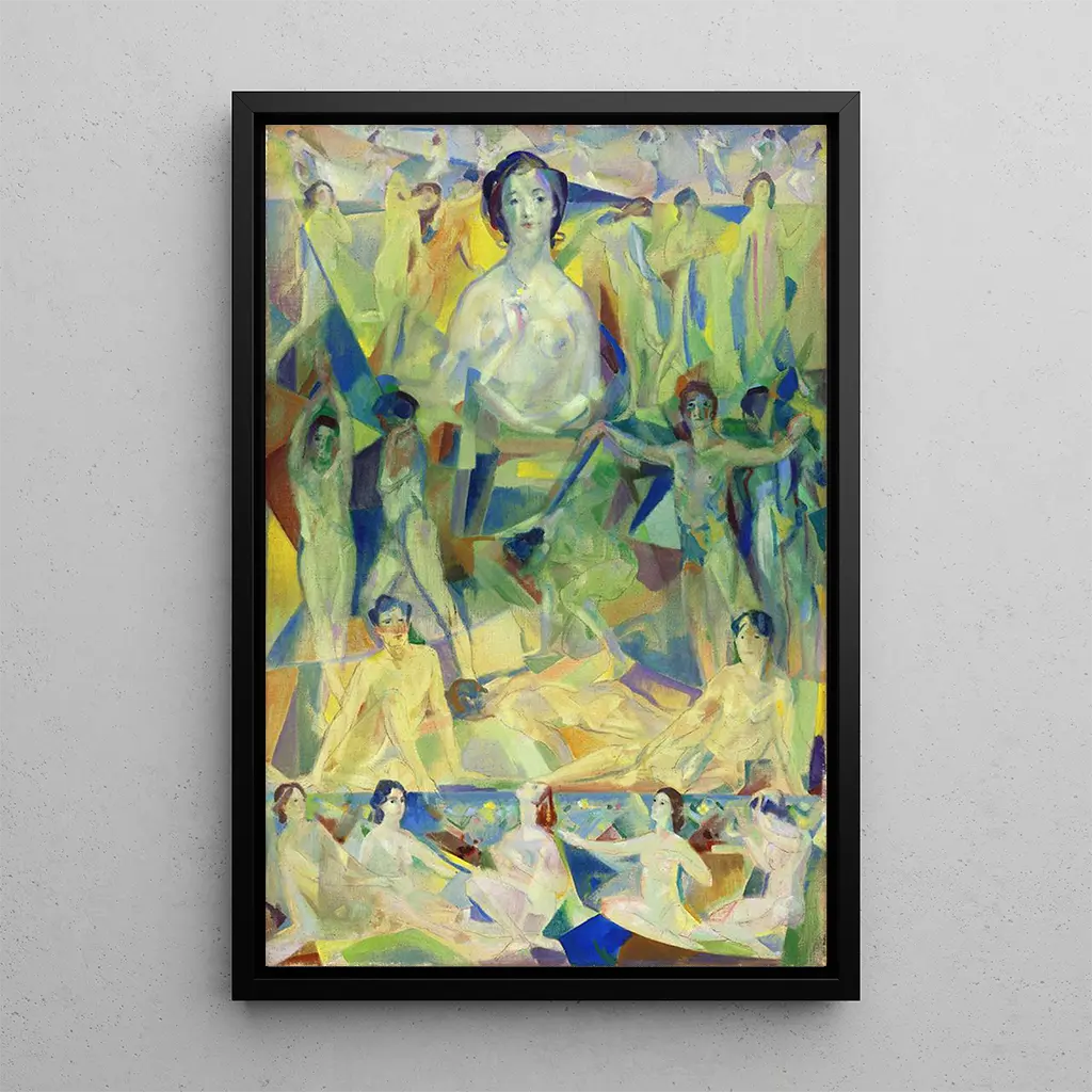 Arthur Bowen Davies, aktiv gegen Ende des 19. und Anfang des 20. Jahrhunderts, ist bekannt für seine Rolle in der Entwicklung des amerikanischen Symbolismus. Beeinflusst von europäischen Bewegungen, verstand er es, Elemente der Mythologie und Spiritualität in sein Werk zu integrieren. Seine Karriere, geprägt von Ausstellungen in der National Academy of Design und der Pennsylvania Academy of the Fine Arts, zeugt von wachsender Anerkennung. Davies war auch ein leidenschaftlicher Befürworter zeitgenössischer Künstler und trug zur Entstehung einer neuen künstlerischen Sprache bei. "La Grande Mère" ist Teil dieser Ausdruckssuche, bei der Natur und menschliche Emotionen aufeinandertreffen.