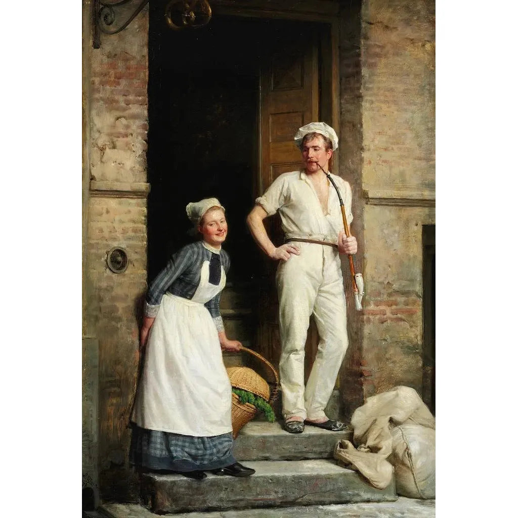 Carl Bloch, eine ikonische Figur der dänischen Malerei, hat es verstanden, Szenen des Alltagslebens mit einzigartiger Sensibilität zu verewigen. Aktiv im 19. Jahrhundert, wurde er vom Romantizismus und Realismus beeinflusst, was ihm ermöglichte, Werke zu schaffen, die sowohl zugänglich als auch zutiefst menschlich sind. Seine Darstellungen des täglichen Lebens, wie die des Bäckers, zeugen von seinem Interesse an den kleinen Geschichten, die das große Narrativ der dänischen Gesellschaft ausmachen. Bloch hat eine Verbindung zwischen Kunst und Leben hergestellt, wodurch seine Werke zeitlos und universell sind.