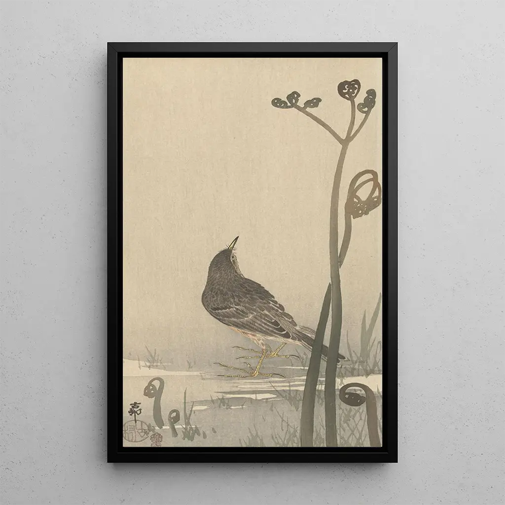 „Wasserpfeifer“ von Ohara Koson ist ein faszinierendes kunstwerk, das die Flüssigkeit und Leichtigkeit der Natur evoziert. Das bild zeigt einen zarten vogel, eingefroren in einem Moment der Anmut, vor einem Hintergrund üppigen Laubs. Die sanften Farben und die minutösen Details zeugen von Kosons Meisterschaft in der Kunst der kunstdruck-gestaltung. Die verwendete technik schafft eine beruhigende atmosphäre, in der das Flüstern des Wassers fast hörbar erscheint. Dieses kunstwerk lädt zu einer aufmerksamen betrachtung ein und offenbart die verborgene schönheit in den einfachen momenten des lebens.