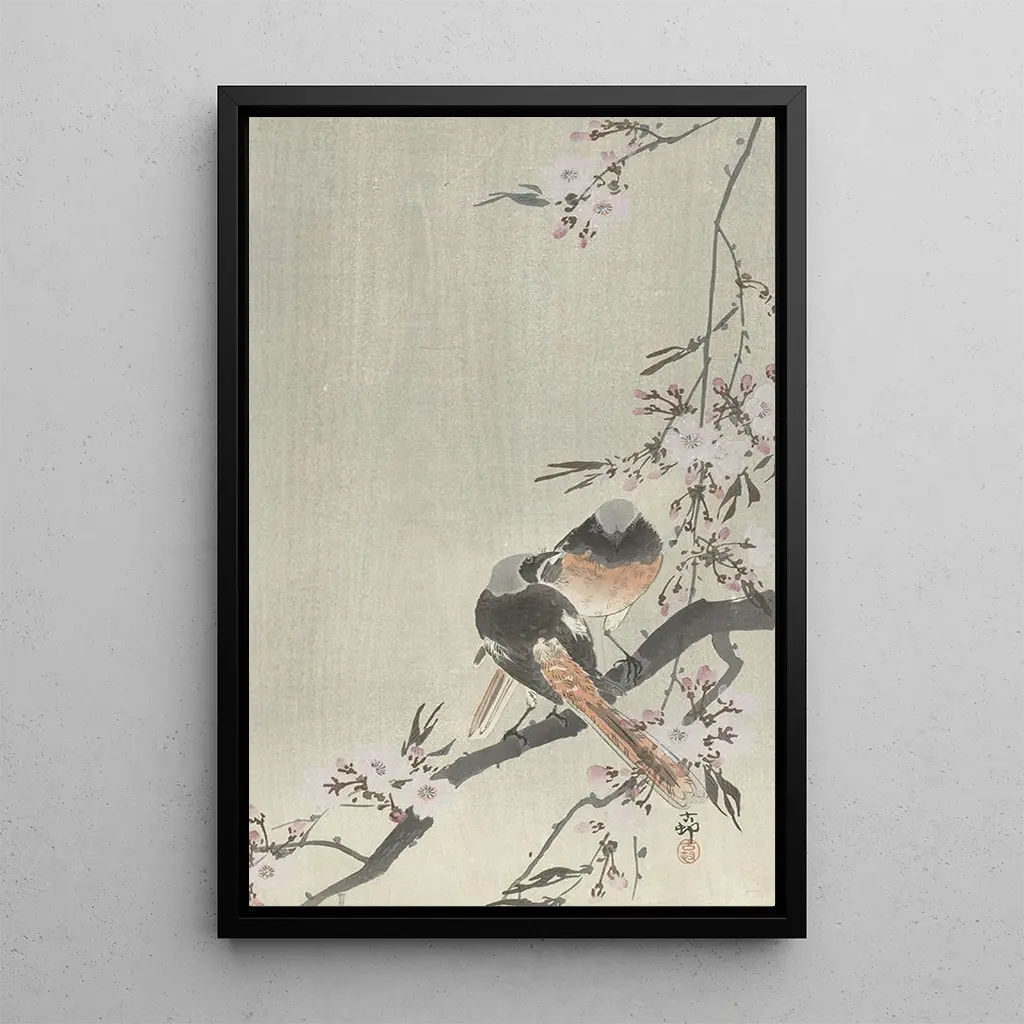 Kunstdruck | Zwei rot-schweifige Sigillendrucke mit Kirschblüten - Ohara Koson