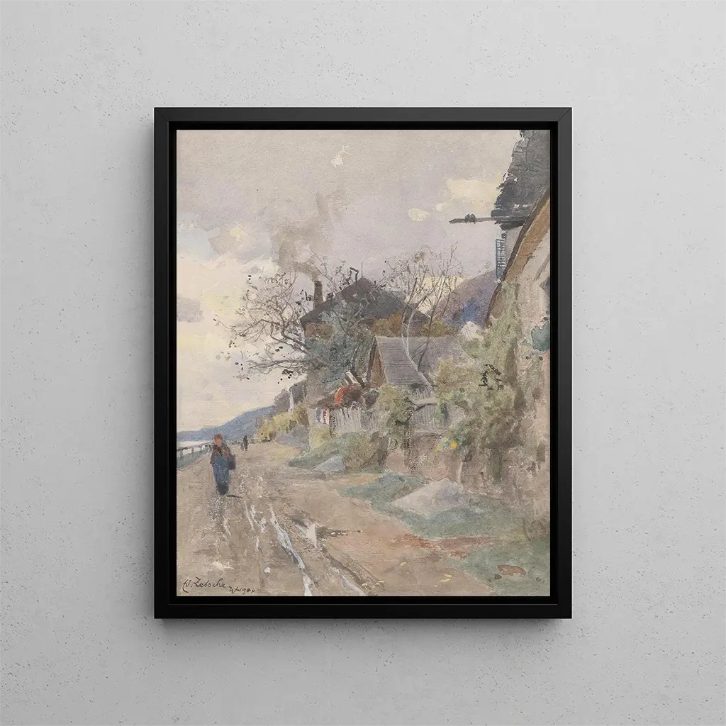 Reproduktion Rive du Danube dans la Wachau - Eduard Zetsche – Einführung fesselnd In der reichen und vielfältigen Landschaft der Kunst des 19. Jahrhunderts erscheint das Werk "Rive du Danube dans la Wachau" von Eduard Zetsche als ein offenes Fenster zur zeitlosen Schönheit der Natur. Diese zarte und eindrucksvolle Darstellung der Donau, die sich durch das Tal der Wachau schlängelt, lädt den Betrachter zu einer tiefen Betrachtung ein. Die Nuancen von Licht und Farbe sowie die Feinheit der Details ermöglichen es, die Magie eines im Moment eingefrorenen Augenblicks zu spüren. Die Szene, getaucht in eine friedliche Atmosphäre, weckt Erinnerungen an Ausflüge am Wasser, bei denen man fast das Murmeln der Wellen hören und die leichte Brise auf der Haut spüren kann. Dieses Werk ist mehr als nur ein ((L)) Kunstdruck; es ist eine Einladung zur Flucht und zum Träumen. Stil und Einzigartigkeit des Werks Der Stil von Eduard Zetsche zeichnet sich durch seine Fähigkeit aus, Licht und Raum fast poetisch einzufangen. In "Rive du Danube dans la Wachau" verwendet der Künstler eine subtile Farbpalette, die zwischen üppigem Grün und beruhigendem Blau schwankt, und schafft so ein harmonisches Gleichgewicht zwischen Himmel und Erde. Die Details der Bäume, Hügel und Wasserreflexionen sind mit einer Präzision wiedergegeben, die auf eine aufmerksame Beobachtung der Natur hinweist. Dieses Gemälde beschränkt sich nicht nur auf die Darstellung einer Landschaft; es evoziert eine Atmosphäre, ein Gefühl von Ruhe und Harmonie. Die Spiel von Schatten und Licht sowie die sorgfältig durchdachte Komposition tauchen den Betrachter in eine immersive Erfahrung ein, bei der jedes Element zum Gesamteindruck beiträgt. Zetsche gelingt es so, einen Dialog zwischen der natürlichen Welt und der menschlichen Seele herzustellen, was sein Werk zu einem wahren Meisterwerk des Impressionismus macht. Der Künstler und sein Einfluss Eduard Zetsche, oft weniger bekannt als seine Zeitgenossen, hat dennoch einen unauslöschlichen Eindruck in der Welt der Kunst hinterlassen. Ursprünglich aus Deutschland stammend, wurde er von den großen Meistern seiner Zeit beeinflusst, entwickelte aber gleichzeitig einen eigenen Stil. Seine Leidenschaft für die Natur und sein Wunsch, ihre Schönheit einzufangen, führten ihn dazu, verschiedene Landschaften zu erkunden, aber
