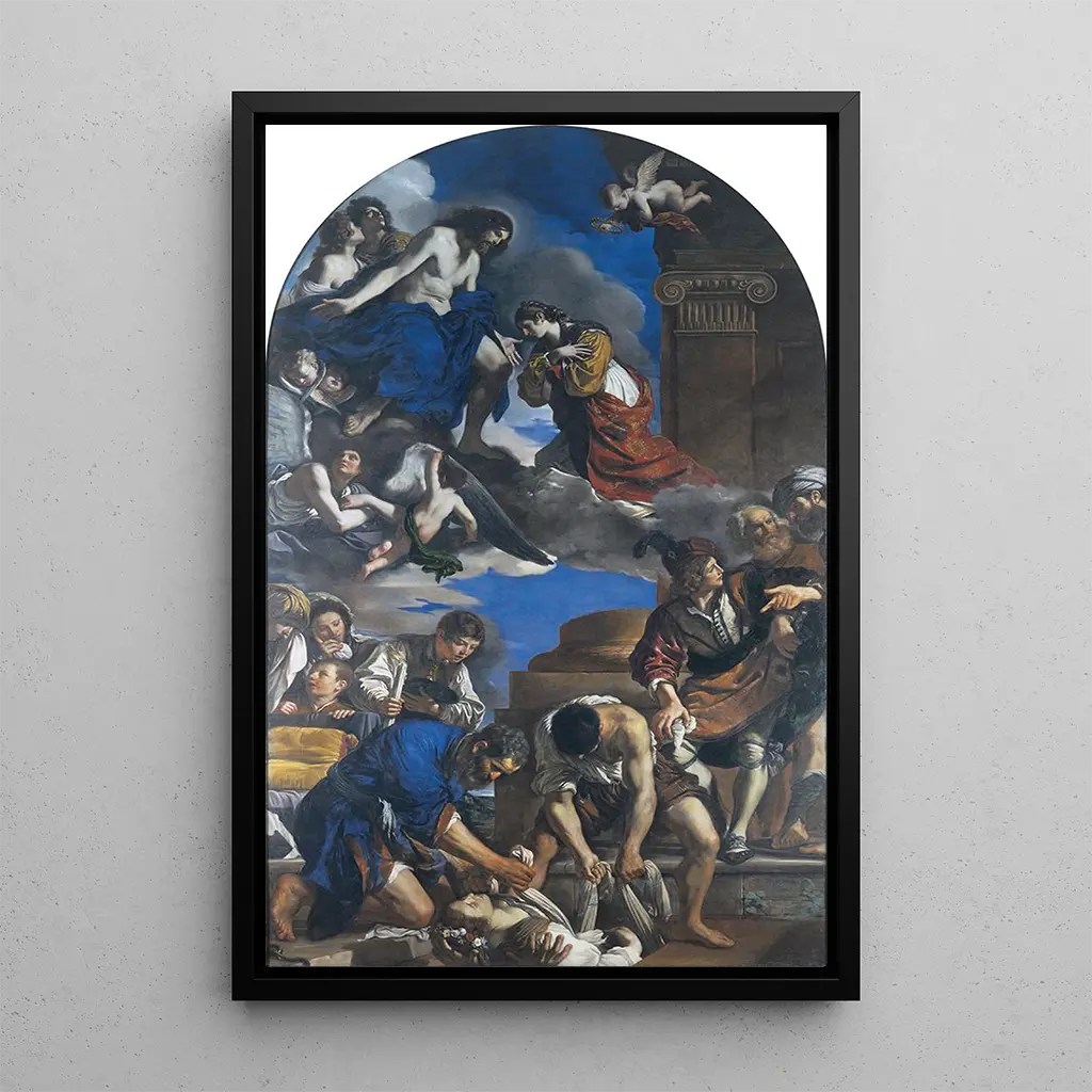 Die Reproduktion des Enterments von Sainte Pétronille ist eine ideale Wahl, um Ihr Interieur zu bereichern, sei es im Wohnzimmer, im Büro oder im Schlafzimmer. Die Qualität der Reproduktion garantiert eine bemerkenswerte Treue zu den Details des Originals, sodass Sie die visuelle Fülle des Werks voll genießen können. Die ästhetische Anziehungskraft dieses Gemäldes, mit seinen lebendigen Farben und seiner emotionalen Atmosphäre, macht es zu einem faszinierenden Dekorationsstück. Durch die Integration dieses Leinwandbildes in Ihren Raum verleihen Sie ihm eine Note von Eleganz und Spiritualität und feiern gleichzeitig das künstlerische Erbe des italienischen Barock.