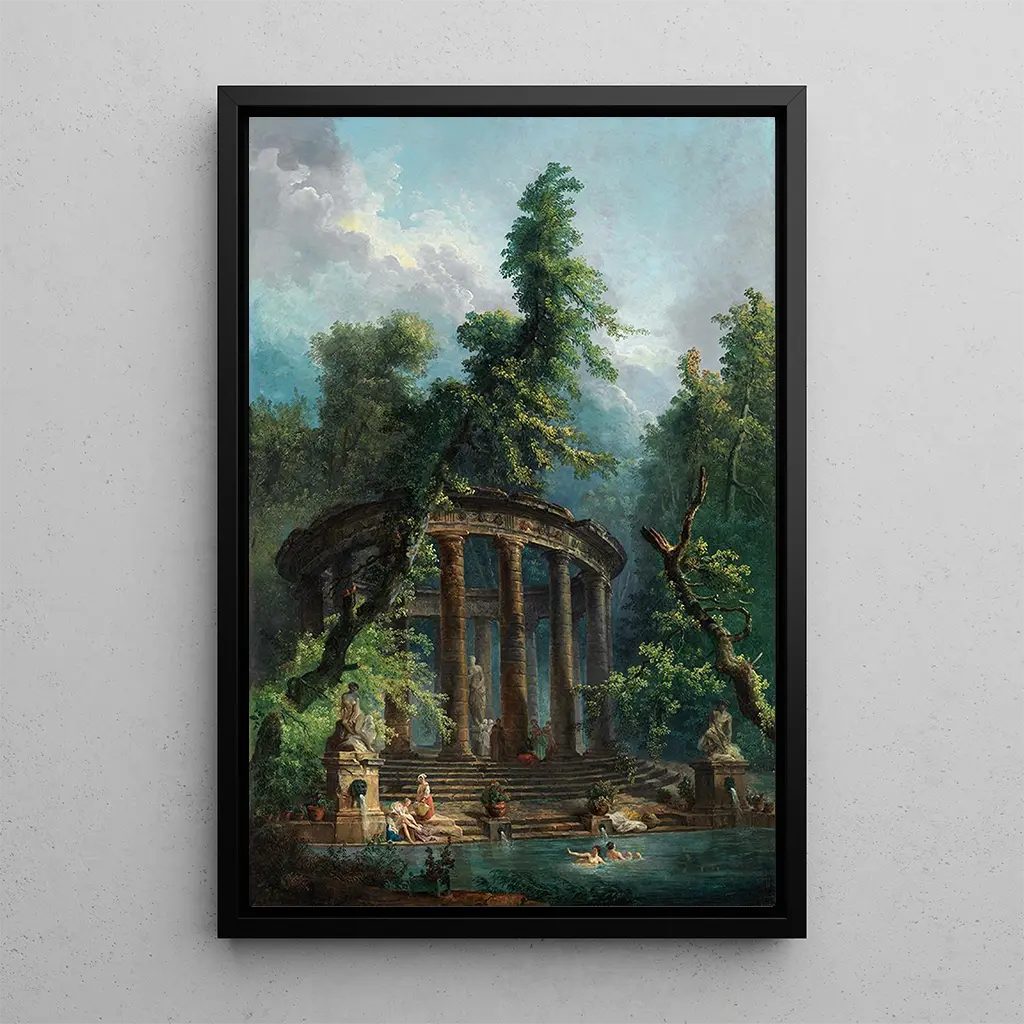 Hubert Robert, actif au XVIIIe siècle, est souvent considéré comme l’un des pionniers du paysage romantique. Son œuvre se distingue par une approche unique qui mêle la nature et l’architecture, révélant une sensibilité particulière pour les ruines et les jardins. Formé à l’Académie royale de peinture et de sculpture, Robert a été influencé par ses voyages en Italie, où il a découvert les splendeurs de l’Antiquité. Ses tableaux, comme "Le Bassin de baignade", témoignent d’une maîtrise technique et d’une vision poétique qui ont marqué son époque et continuent d’inspirer les artistes d’aujourd’hui.