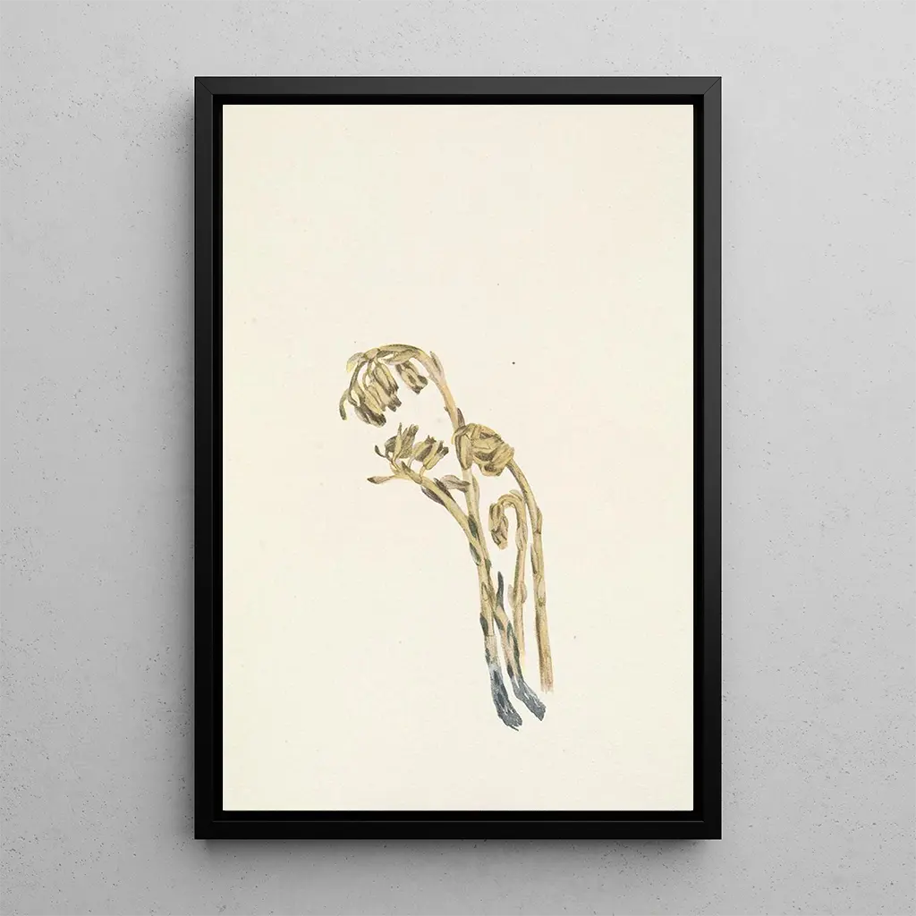 Der Hypopitys américaine pâle, auch bekannt als "Heller des Waldes", zeigt sich mit subtiler Anmutung. Dieses Werk von Mary Vaux Walcott fängt die vergängliche Schönheit dieser seltenen Pflanze ein, mit Nuancen von blassem Gelb und zartem Grün, die die Sanftheit des Unterholzes hervorrufen. Die Aquarelltechnik, die mit Feinfühligkeit angewandt wird, ermöglicht es, die Transparenz der Blätter und die Zartheit der Blüten darzustellen. Die Atmosphäre, die von dieser kunstdruck ausgeht, lädt zu stillem Betrachten ein, bei dem jedes Detail die Geheimnisse der Natur zu murmeln scheint.