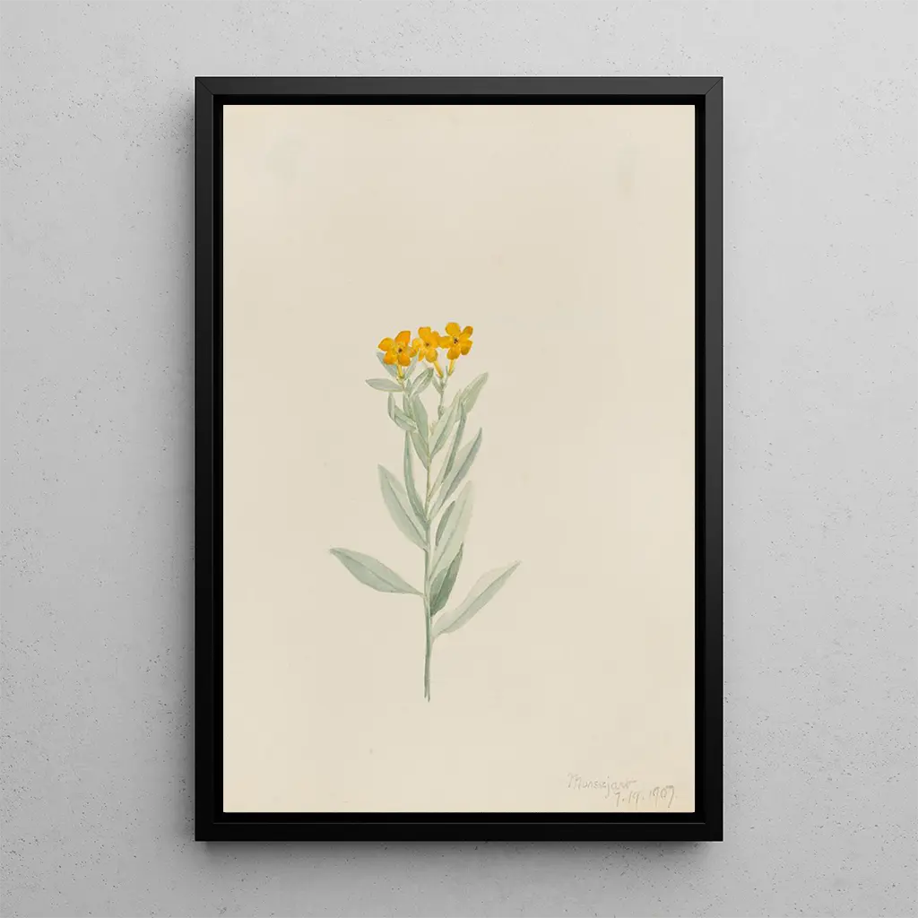 Die kunstdruck von Lithospermum canescens, ausgeführt von Mary Vaux Walcott, entführt uns in eine florale Welt voller Gelassenheit. Dieses Werk, zugleich zart und lebendig, fängt die Schönheit der Blumen mit bemerkenswerter Präzision ein. Die Nuancen von Gelb und Grün verschmelzen harmonisch und erinnern an die Sanftheit eines Frühlingsmorgens. Die Aquarelltechnik, die die Künstlerin verwendet, ermöglicht die Schaffung subtiler Farbverläufe, die jedem Blütenblatt Leben einhauchen. Die allgemeine Atmosphäre des Gemäldes lädt zur Kontemplation ein, als ob jede Blume eine Geschichte von Wachstum und Widerstandskraft erzählt.