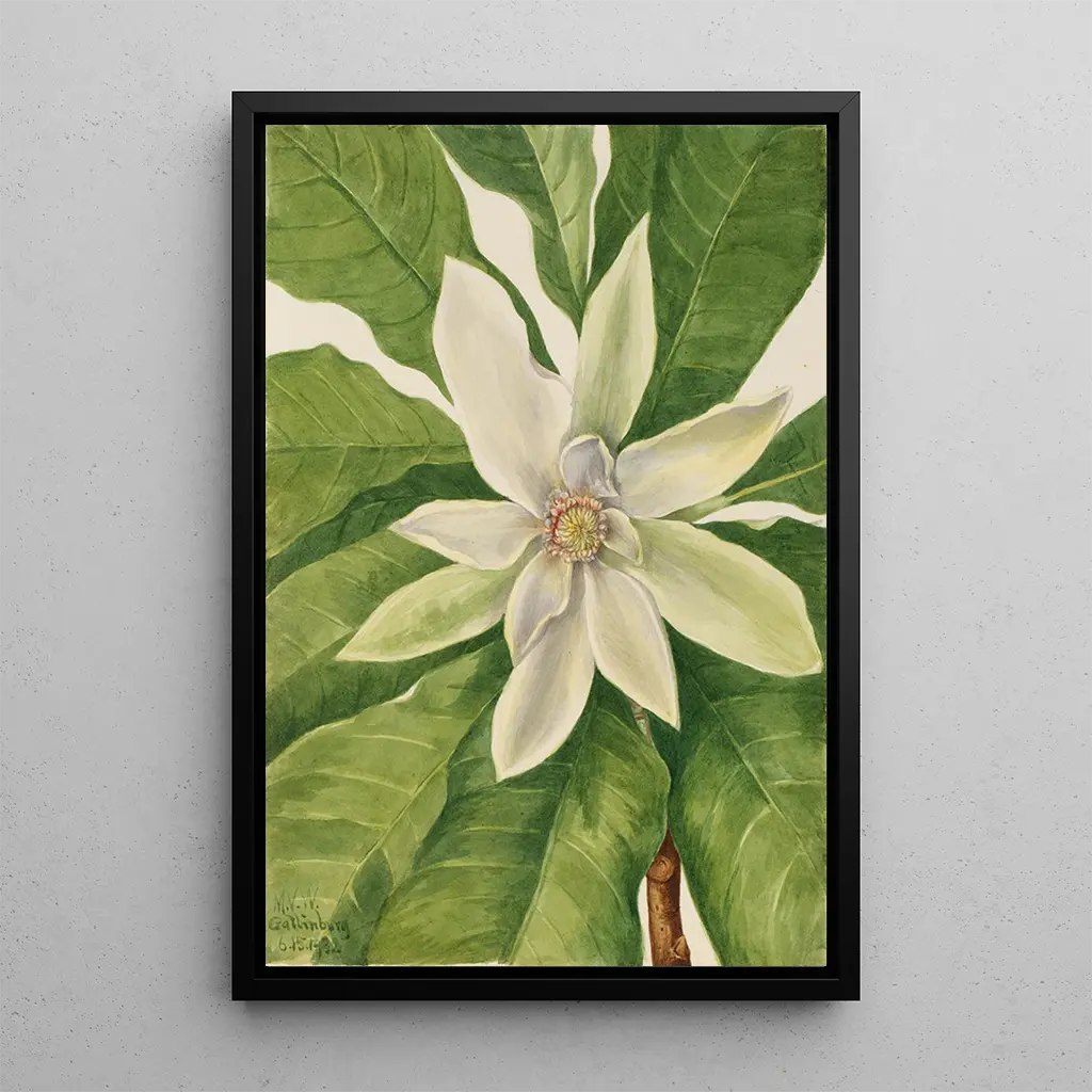 Die kunstdrucke von Magnolia mit großen Blättern von Mary Vaux Walcott entführen uns in eine zarte und raffinierte botanische Welt. Die sanften und natürlichen Farben, die von zartem Grün bis hin zu strahlendem Weiß reichen, wecken die Frische eines frühlingshaften Morgens. Die meisterhafte Aquarelltechnik ermöglicht es, die Transparenz der Blütenblätter und die Textur der Blätter realistisch wiederzugeben. Die Atmosphäre, die dieses Werk ausstrahlt, ist sowohl beruhigend als auch inspirierend und lädt zu einer aufmerksamen Betrachtung der Details der Natur ein. Jeder Pinselstrich scheint das Wesen dieser majestätischen Pflanze einzufangen und macht dieses Bild zu einer wahren Hommage an die Schönheit der Pflanzenwelt.