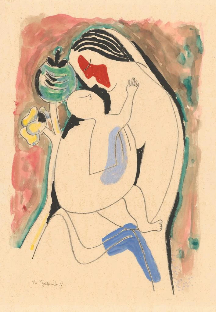 Kunstdruck | Mutter mit Baby und Blume - Mikuláš Galanda