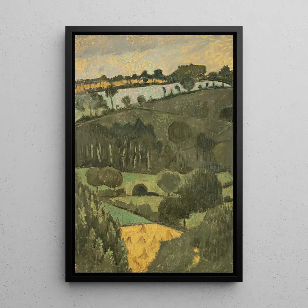 In der kunstdruckversion von "Les blés coupés" taucht Paul Sérusier uns in eine lebendige und farbenfrohe Ernteszene ein. Das Werk zeichnet sich durch seine warmen Farben und seine stilisierten Formen aus, die typisch für den nabi-Ansatz der Kunst sind. Sérusier verwendet mutige Farbstriche, um das goldene Licht der Sonne auf den Weizenfeldern zu beschreiben und so eine Atmosphäre von Freude und Vollkommenheit zu schaffen. Die Komposition, die sich auf die Figuren der Erntearbeiter konzentriert, zeugt von einer tiefen Verbindung zwischen Mensch und Erde und feiert die landwirtschaftliche Arbeit sowie die Schönheit der bretonischen Landschaften.