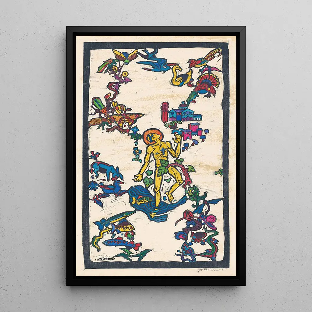 Die kunstdruck von Saint François von Reijer Stolk evoziert eine tiefe Verbindung zwischen Mensch und Natur. In diesem Werk schaffen erdige Farben und sanfte Nuancen eine warme und beruhigende Atmosphäre. Die Haltung des Heiligen, voller Gelassenheit, lädt zur Meditation und Reflexion ein. Die detaillierten Feinheiten, wie die Blätter und Tiere, die ihn umgeben, verstärken diese spirituelle und natürliche Verbindung. Die Technik von Stolk, die Realismus und impressionistische Akzente verbindet, erweckt diese Szene zum Leben und ermöglicht es dem Betrachter, den inneren Frieden zu spüren, den Saint François verkörpert.