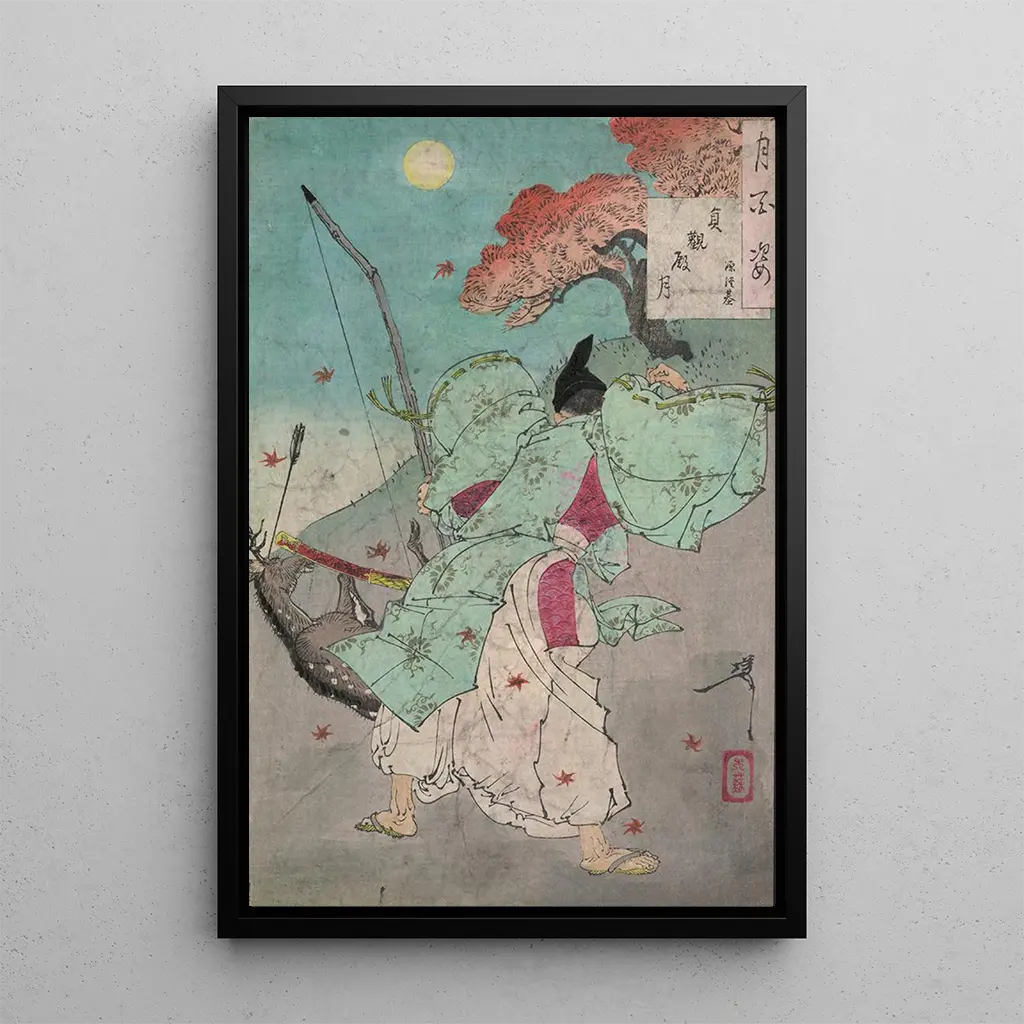 Lune de Jganden : ein Hauch nächtlicher Gelassenheit Das kunstdruck Lune de Jganden von Tsukioka Yoshitoshi evoziert eine nächtliche Szene voller Ruhe und Geheimnis. Der Mond, majestätisch und leuchtend, dominiert die Landschaft, während sanfte Schatten die natürlichen Elemente umhüllen. Die Farben, subtil nuanciert, schaffen eine friedliche Atmosphäre, die zur Kontemplation einlädt. Die Technik des Stempeldrucks, charakteristisch für Yoshitoshi, zeigt sich hier durch raffinierte Details und eine visuelle Harmonie, die den Blick fesselt. Dieses Werk lädt zu einer Eintauchen in eine Welt ein, in der Natur und Geist sich vereinen, und bietet ein einzigartiges ästhetisches Erlebnis. Tsukioka Yoshitoshi : ein Pionier des modernen Stempeldrucks Tsukioka Yoshitoshi, aktiv in der zweiten Hälfte des 19. Jahrhunderts, gilt als einer der größten Meister des japanischen Stempeldrucks. Sein Werk zeichnet sich durch einen innovativen Ansatz aus, der Tradition und Moderne verbindet, beeinflusst von den Umbrüchen seiner Zeit. Yoshitoshi hat es verstanden, historische und legendäre Geschichten mit einer einzigartigen Sensibilität einzufangen, während er mit Farbe und Form experimentierte. Lune de Jganden ist ein perfektes Beispiel für sein Talent und zeigt seine Fähigkeit, fesselnde Kompositionen zu schaffen, die mit menschlichen Emotionen und kulturellen Traditionen resonieren. Eine dekorative Anschaffung mit vielfältigen Vorteilen Der kunstdruck Lune de Jganden stellt eine wertvolle Ergänzung jeder Inneneinrichtung dar, sei es im Wohnzimmer, Büro oder Schlafzimmer. Seine Druckqualität und Treue zum Originalwerk garantieren eine beeindruckende visuelle Darstellung. Durch die Integration dieses Bildes in Ihren Raum bringen Sie nicht nur einen Hauch von Eleganz, sondern auch eine künstlerische Tiefe, die Ihre Umgebung bereichert. Die ästhetische Anziehungskraft dieses Leinwandbildes, mit seinen zarten Nuancen und seiner ruhigen Atmosphäre, macht es zur idealen Wahl für alle, die Schönheit und Kultur in ihrer Innendekoration verbinden möchten.