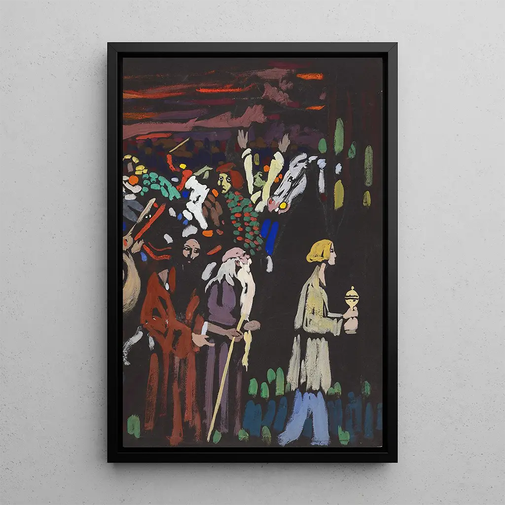 Wassily Kandinsky, eine ikonische Figur der modernen Kunst, spielte eine entscheidende Rolle bei der Entwicklung der abstrakten Kunst zu Beginn des 20. Jahrhunderts. Beeinflusst vom Symbolismus und Fauvismus, suchte er, Ideen und Emotionen durch nicht-repräsentative Formen auszudrücken. „Studie über die Panik“ zeugt von seinem Interesse an Psychologie und emotionalen Reaktionen, einem wiederkehrenden Thema in seinem Werk. Durch die Integration von Elementen aus Musik und Spiritualität hat Kandinsky den Weg für ein neues Verständnis der Kunst geebnet, bei dem die visuelle Erfahrung zu einer inneren Erforschung wird.