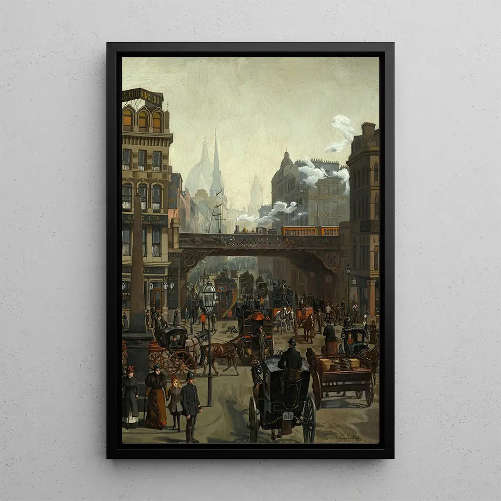 Ludgate Hill, London: eine poetische Vision des urbanen Lebens Das Werk "Ludgate Hill, London" von Wilhelm Trübner fängt die lebendige Essenz des Stadtlebens am Ende des 19. Jahrhunderts ein. Die Komposition, reich an Details, zeigt eine belebte Straße, in der Passanten mit majestätischen Gebäuden verschmelzen. Die Farben, sowohl warm als auch kühl, schaffen eine dynamische Atmosphäre, die fast greifbar ist. Die Technik von Trübner, die Impressionismus und Realismus verbindet, ermöglicht es, die Bewegung und Energie dieser londoner Szene zu spüren. Jedes Element, von den Schatten, die die Gebäude werfen, bis zu den Lichtreflexen, trägt zu einer völligen Eintauchen in die urbane Stimmung bei. Wilhelm Trübner: ein Meister der künstlerischen Moderne Wilhelm Trübner, deutscher Maler geboren 1851, ist eine ikonische Figur der künstlerischen Bewegung seiner Zeit. Beeinflusst vom Impressionismus und Symbolismus, entwickelte er einen einzigartigen Stil, der sorgfältige Beobachtung mit persönlicher Interpretation verbindet. Seine Karriere erstreckt sich über mehrere Jahrzehnte, in denen er verschiedene Themen erforschte, von urbanem Leben bis zu introspektiveren Landschaften. "Ludgate Hill, London" zeugt von seinem Interesse an Modernität und Alltagsleben, während es in einen historischen Kontext eingebettet ist, in dem die Industrialisierung die europäischen Städte radikal veränderte. Eine dekorative Anschaffung mit vielfältigen Vorzügen Der kunstdruck von "Ludgate Hill, London" ist eine ideale Wahl, um Ihr Interieur zu bereichern, sei es im Wohnzimmer, Büro oder Schlafzimmer. Dieses Bild, dank seiner Druckqualität und Treue zum Originalwerk, verleiht Ihrer Dekoration einen Hauch von Eleganz und Kultur. Seine ästhetische Anziehungskraft, die Dynamik und Poesie verbindet, zieht den Blick auf sich und regt Gespräche an. Durch die Integration dieses Leinwandbildes in Ihren Raum bieten Sie Ihren Wänden ein Fenster zu einer faszinierenden Epoche, während Sie gleichzeitig ein zentrales Kunstwerk hinzufügen, das Ihre Gäste fesseln wird.
