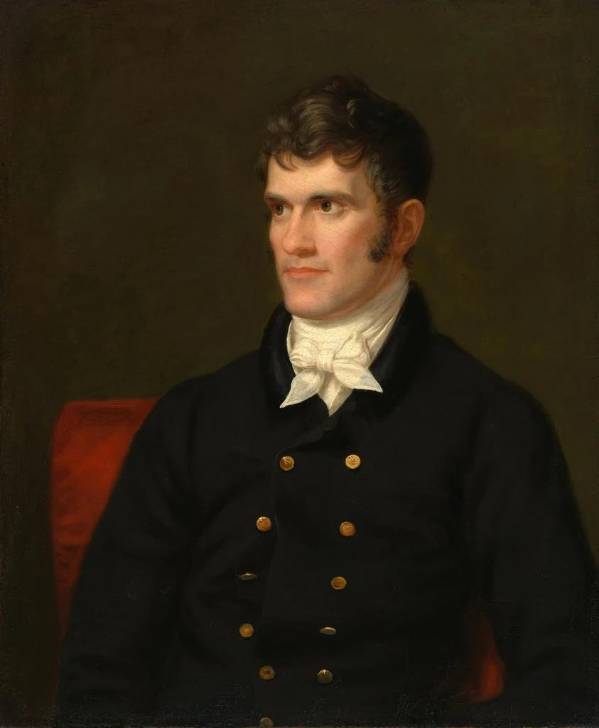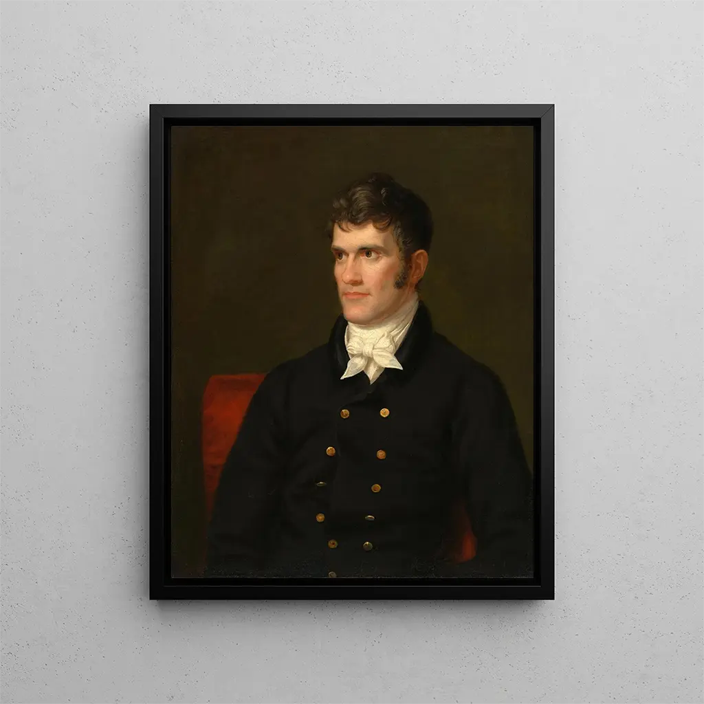 Reproduktion John C.. Calhoun - Charles Bird King – Einführung fesselnd Das Gemälde "John C. Calhoun" von Charles Bird King ist viel mehr als nur eine Darstellung eines Politikers. Es verkörpert eine Epoche, die von sozialen und politischen Spannungen geprägt ist, und bietet gleichzeitig einen intimen Einblick in die Persönlichkeit einer der umstrittensten Figuren der amerikanischen Geschichte. Dieses Porträt, das eine imposante Präsenz ausstrahlt, entführt uns in die Welt des frühen 19. Jahrhunderts, eine Zeit des Umbruchs und tiefgehender Reflexionen über nationale Identität und Staatsrechte. Durch dieses Werk lädt uns King ein, die Nuancen des öffentlichen und privaten Lebens von Calhoun zu erkunden, was dieses Bild für jeden, der sich für Geschichte und Kunst interessiert, unverzichtbar macht. Stil und Einzigartigkeit des Werks Der Stil von Charles Bird King zeichnet sich durch einen realistischen und detaillierten Ansatz aus, der nicht nur die physischen Merkmale seiner Subjekte hervorhebt, sondern auch deren Charakter und Wesenskern. In "John C. Calhoun" tragen die reichen Farben und zarten Schatten dazu bei, eine Atmosphäre von Würde und Ernsthaftigkeit zu schaffen. Der durchdringende Blick von Calhoun, der mit bemerkenswerter Präzision eingefangen wurde, scheint den Betrachter zu beobachten und stellt eine fast greifbare Verbindung zwischen Vergangenheit und Gegenwart her. King ist ein Meister darin, Emotionen durch die Malerei zu vermitteln, und dieses Werk bildet keine Ausnahme. Jedes Detail, vom sorgfältig dargestellten Kostüm bis zu den Hintergrundelementen, die den historischen Kontext andeuten, zeugt von technischer Meisterschaft und künstlerischer Sensibilität, die dieses Werk zu einem wahren Meisterwerk machen. Der Künstler und sein Einfluss Charles Bird King, geboren 1796, ist ein amerikanischer Künstler, dessen Werk die künstlerische Landschaft seiner Zeit tief geprägt hat. Er ist bekannt für seine Porträts politischer Persönlichkeiten und bedeutender Figuren, aber auch für seine Darstellungen der indigenen Völker Amerikas. King verstand es, den Geist seiner Epoche mit einer Sensibilität einzufangen, die über das einfache Porträt hinausgeht. Sein künstlerischer Ansatz, der Realismus und Empathie verbindet, ebnete den Weg für andere Künstler, die versuchten, nicht nur das äußere Erscheinungsbild, sondern auch die innere Komplexität ihrer Subjekte darzustellen. Beim Malen von John C.. Calhoun beschränkt sich King nicht nur darauf, einen Mann zu porträtieren; er verewigt eine Epoche, einen Kampf und eine Weltanschauung, die weiterhin nachwirken.