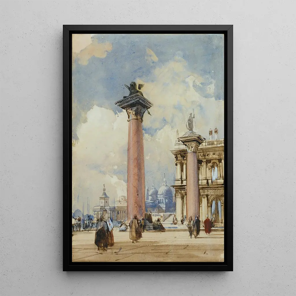 La Piazzetta Venise : eine lebendige Szene des Lebens La Piazzetta Venise, gemalt von Richard Parkes Bonington, fängt die Lebendigkeit und Schönheit eines der bekanntesten Orte der Stadt ein. Die leuchtenden Farben des Kunstdrucks, die von den warmen Tönen der Gebäude bis zu den funkelnden Reflexionen auf dem Wasser reichen, schaffen eine lebendige und dynamische Atmosphäre. Die Figuren, gekleidet in typischer Kleidung, verleihen dieser Szene eine menschliche Dimension und machen die Lebendigkeit des venezianischen Lebens spürbar. Jedes Detail, vom Bewegung der Segel bis zu den Schatten, die die Sonne wirft, zeugt von Boningtons Geschick, den Moment einzufangen, und macht diesen Kunstdruck La Piazzetta Venise zu einem echten Fenster in die Vergangenheit. Richard Parkes Bonington : ein Virtuose der Stadtlandschaft Richard Parkes Bonington, aktiv im frühen 19. Jahrhundert, ist bekannt für sein außergewöhnliches Talent im Bereich der Landschafts- und Porträtmalerei. In einem künstlerischen Umfeld aufgewachsen, wurde er von den großen französischen Meistern beeinflusst, insbesondere während seiner Aufenthalte in Frankreich. Sein romantischer Stil, geprägt von einer sorgfältigen Detailgenauigkeit und einer mutigen Farbgestaltung, prägte seine Zeit. La Piazzetta Venise veranschaulicht perfekt seine Herangehensweise, die realistische Darstellung mit einer poetischen Interpretation des Stadtlebens zu verbinden. Bonington hat die Magie von Venedig verewigt und dieses Werk zu einem wertvollen Zeugnis seines künstlerischen Genies gemacht. Eine dekorative Anschaffung mit vielfältigen Vorzügen Der Kunstdruck von La Piazzetta Venise ist eine perfekte Ergänzung für jede Innendekoration, sei es im Wohnzimmer, Büro oder Schlafzimmer. Seine hohe Reproduktionsqualität garantiert eine außergewöhnliche Farbtreue und Detailgenauigkeit des Originalwerks, während er Ihrem Raum eine elegante und kulturelle Note verleiht. Mit diesem Bild schaffen Sie eine warme und einladende Atmosphäre in Ihrem Zuhause und beeindrucken gleichzeitig Ihre Gäste. Dieser Leinwanddruck, mit seinem zeitlosen Charme, ist mehr als nur eine Dekoration; er ist eine Einladung, durch die Zeit zu reisen und die Schönheit Venedigs durch die Augen von Richard Parkes Bonington zu entdecken.