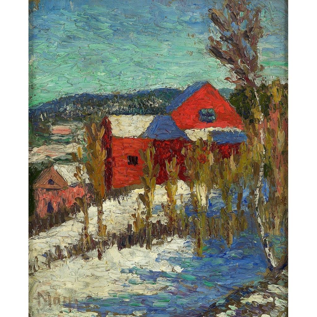 Entdecken Sie das Meisterwerk von Konrad Mägi, Maastik majadega (zwischen 1908 und 1910), das einen entscheidenden Wendepunkt in der Kunstgeschichte markiert. In einer Zeit radikaler Veränderungen gelang es dem Künstler, das Wesen der Landschaft durch eine subtile Farbpalette und einen innovativen Ansatz des Symbolismus einzufangen. Diese ikonische Kunst weckte schnell großes Interesse und hallt bis heute in der modernen Ikonographie nach.
