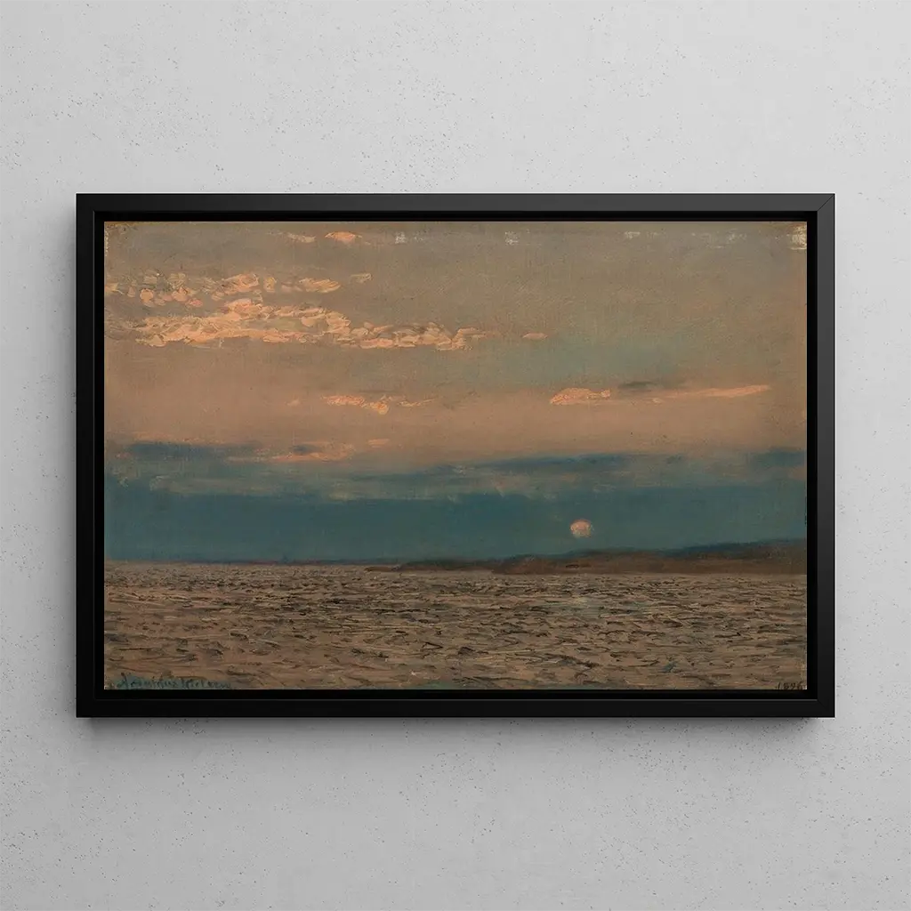 Soir Hvaler : eine visuelle serenade bei Dämmerung. In diesem Werk von Amaldus Nielsen wird der Betrachter an den Wasserrand versetzt, wo das Licht der Dämmerung auf den ruhigen Wellen von Hvaler tanzt. Die Nuancen von Blau und Orange verschmelzen harmonisch und schaffen eine ruhige und kontemplative Atmosphäre. Nielsen fängt mit seiner impressionistischen Technik die flüchtige Schönheit des Moments ein und lädt zur Träumerei ein. Die Silhouetten der Boote zeichnen sich sanft gegen den Horizont ab, während die funkelnden Reflexe eine poetische Dimension zur Szene hinzufügen. Dieses Gemälde ist eine wahre Ode an die Natur und die Ruhe der Sommerabende. Amaldus Nielsen : ein Meister der skandinavischen Landschaft. Geboren 1850, ist Amaldus Nielsen ein norwegischer Maler, der die Schönheit der skandinavischen Landschaften mit einer einzigartigen Sensibilität einfängt. Aktiv im späten 19. Jahrhundert, wird er oft mit der impressionistischen Bewegung in Verbindung gebracht und versucht, Licht und Atmosphäre seiner Motive darzustellen. Seine Werke, beeinflusst von der umgebenden Natur, zeugen von seiner Liebe zum Meer und den norwegischen Landschaften. Nielsen spielte eine entscheidende Rolle bei der Entwicklung der skandinavischen Kunst, und seine Gemälde inspirieren weiterhin durch ihre Fähigkeit, tiefe Emotionen hervorzurufen und die natürliche Schönheit zu feiern. Eine dekorative Anschaffung mit vielfältigen Vorzügen. Der kunstdruck von "Soir Hvaler" ist eine ideale Wahl, um Ihre Inneneinrichtung zu bereichern, sei es Wohnzimmer, Büro oder Schlafzimmer. Seine Druckqualität garantiert eine bemerkenswerte Treue zu den Farben und Details des Originalwerks. Dieses Bild bringt eine Note von Gelassenheit und Eleganz in jeden Raum und evoziert die zeitlose Schönheit skandinavischer Landschaften. Durch die Integration dieses kunstdrucks in Ihr Zuhause schaffen Sie eine beruhigende und inspirierende Umgebung, perfekt zum Erholen nach einem langen Tag.