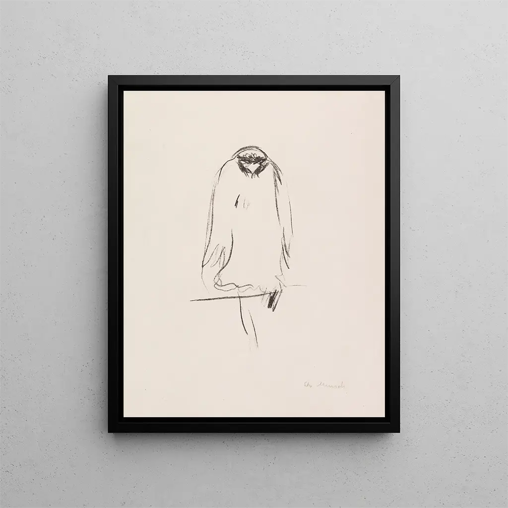 Edvard Munch, eine ikonische Figur des Symbolismus und Expressionismus, prägte die Kunstgeschichte durch seine Fähigkeit, menschliche Emotionen in eindrucksvollen Bildern zu übersetzen. Geboren in Norwegen, wurde er tief durch seine persönlichen Erfahrungen beeinflusst, insbesondere durch Krankheit und Tod, die seine Familie trafen. Diese wiederkehrenden Themen finden sich in seinem Werk, in dem Schmerz und Melancholie häufig präsent sind. Munch konnte sich als Vorreiter durchsetzen und den Weg für zahlreiche Künstler des 20. Jahrhunderts ebnen, die die Tiefen der menschlichen Seele erforschten. "Adler im Sitzen" reiht sich in diese Linie ein und zeugt von seinem Wunsch, zu erfassen